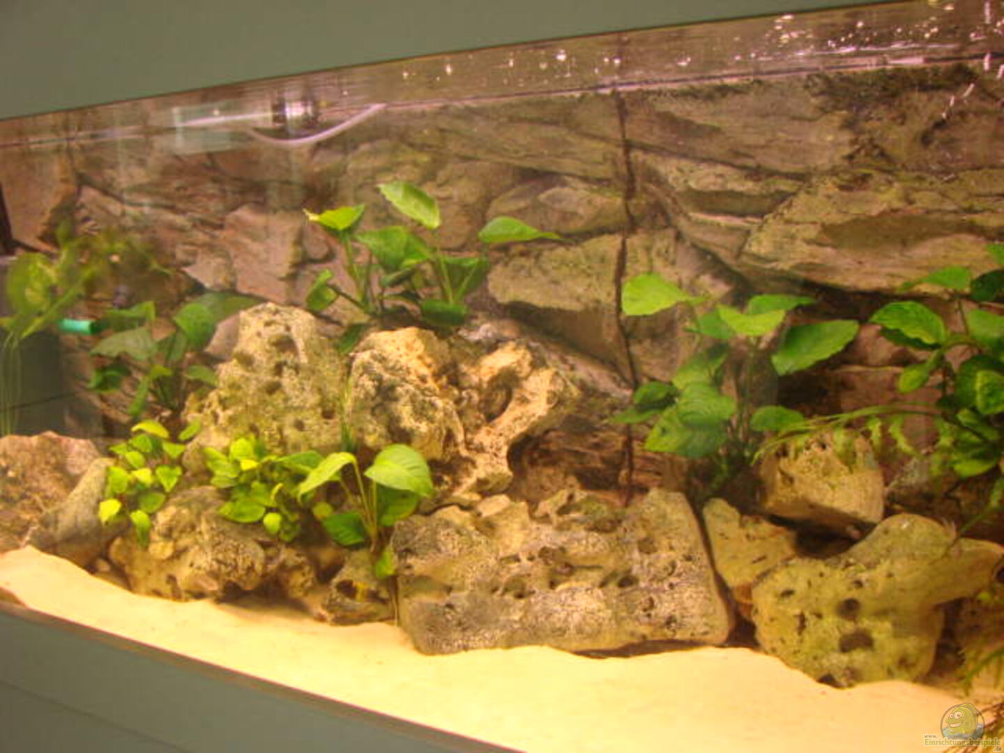 Lochgestein aufgebaut im wesentlichen als laufendes Geröllgestein. Als Rückwand wurde eine echt wirkende Felswand eingeklebt. (3D)