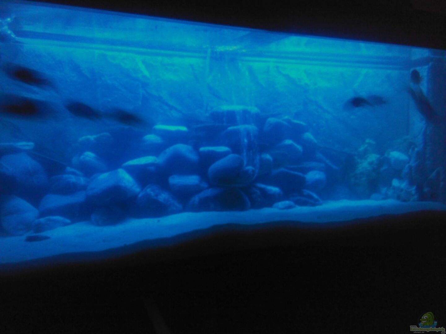 Aquarium aus 12mm Glas. Stossverklebt mit schwarzem Silikon, einer zusätzlichen Sicherheitsnaht innen und in der Mitte mit einer Querstrebe verstärkt.