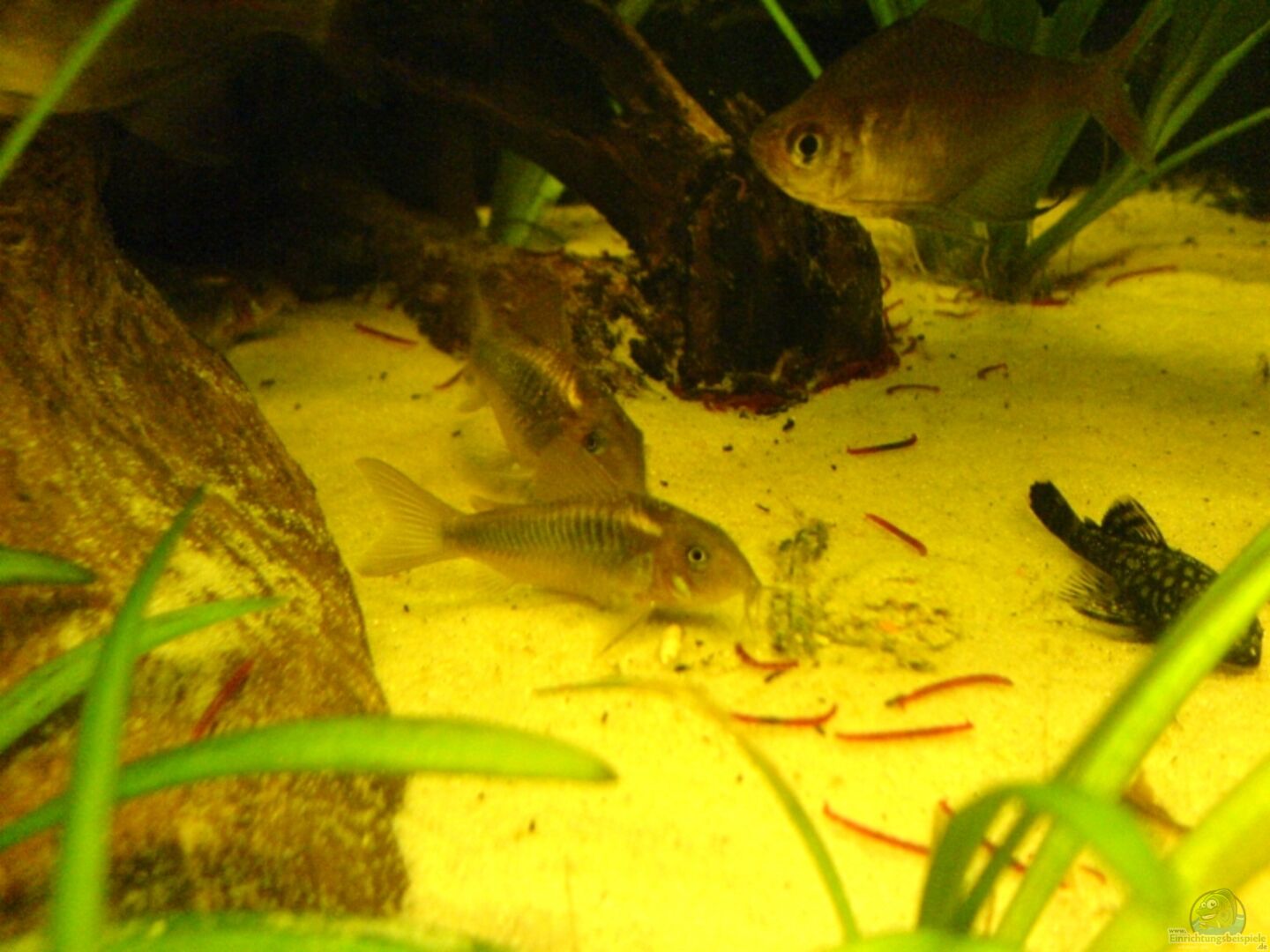 9x C. aeneus, 1x Ancistrus sp. (w) + 4 Jungtiere, 3x Hasemania nana, 1x Agamyxis pectinifrons, 1x Brochis splendens, 15x Hyphessobrycon robertsi, 2 Microgeophagus ramirezi (m/w)