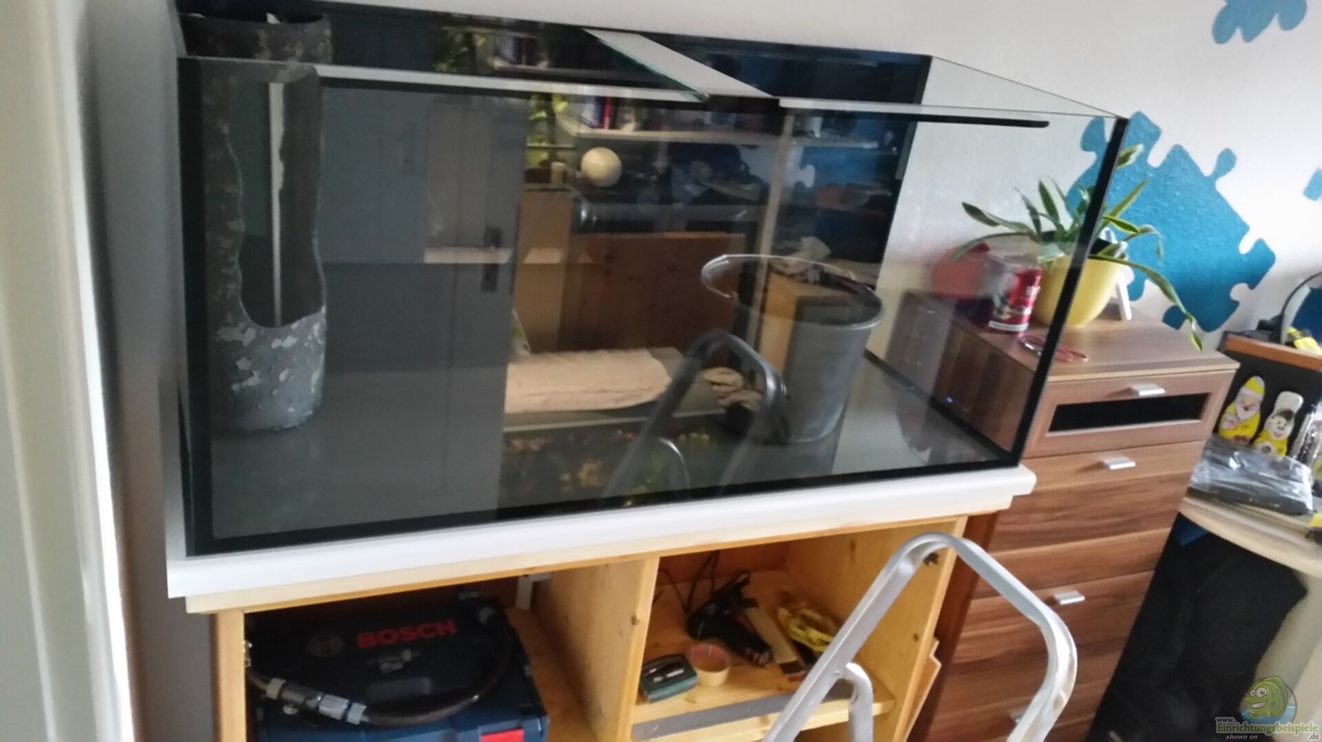 Die Technik Ecke mit "HMF" Grobfilter: - Ist mit Aquarien Silikon eingeklebt. Zudem sind 30mm breite Kabelkanäle als Führung für den groben Filterflies und zur Stabilisierung eingeklebt. - Die Technik Ecke ist aus einem 250mm Abwasser Rohr (natürlich neu) herausgeschnitten und mit Epoxidharz überzogen worden. In den feuchten Harz wurde dann Sand gestreut. Durch den Sand entsteht eine etwas rauere Oberfläche. Darauf setzen sich schön Algen an, die einen natürlicheren Look [...]