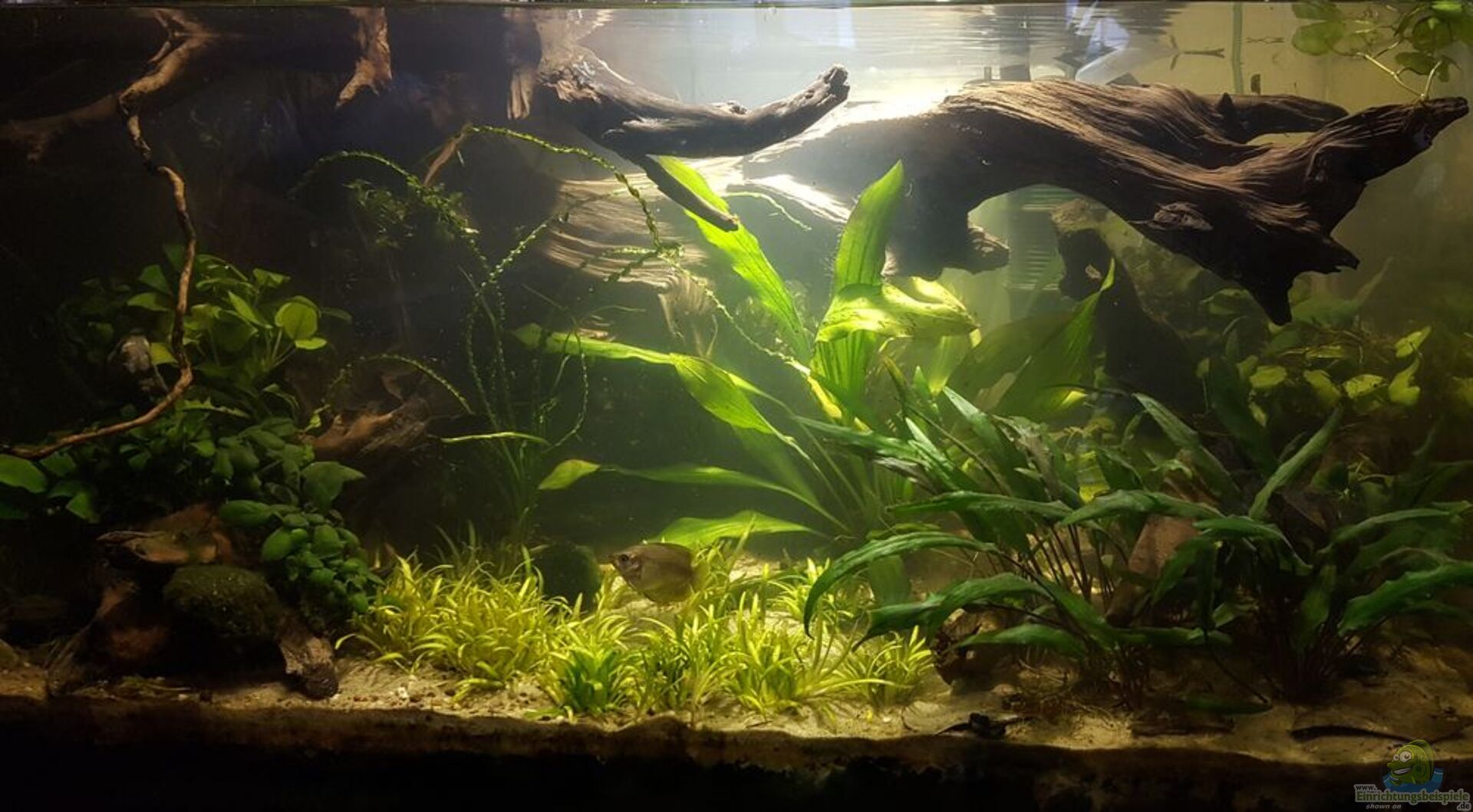 Pflanzen im Boden Cryptocoryne wendtii "brown" (Wendtscher Wasserkelch) Cryptocoryne pontederiifolia (Herzblatt-Wasserkelch) Hydrocotyle leucocephala (Brasilianischer Wassernabel) Cabomba aquatica (Große Haarnixe) Cryptocoryne spiralis (Spiraliger Wasserkelch) Ludwigia repens(Rote Ludwigie) Blyxa japonica (Japanisches Fadenkraut) Alternanthera reineckii (Kleines Papageienblatt) Aufsitzerpflanzen Microsorum pteropus philippine (Javafarn) Moos Taxiphyllum [...]
