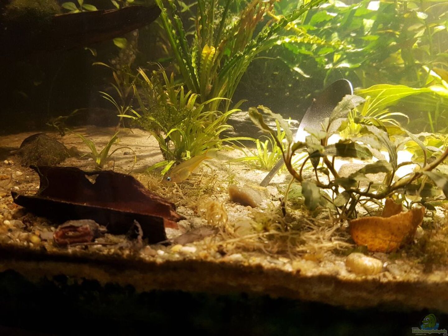 Fische Carinotetraodon travancoricus (Zwergkugelfisch), derzeit 1W/1M und Nachwuchs Otocinclus vittatus (Ohrgitterharnischwels) 2W/3M Otocinclus mariae (Ohrgitterharnischwels) 2M Pangio oblonga (Zimtfarbenes Dornauge) 6? Pangio kuhli (Halbgebändertes Dornauge) 4W/6M Oryzias woworae (Neonreisfisch) 2W/2M und Nachwuchs Colisa lalia (Zwergfadenfisch) 4W (1M, 2xW natur, 2xW golden, aus einem Händlerbecken) Schnecken Brotia henriettae (Genoppte Turmdeckelschnecke) Melanoides tuberculata [...]