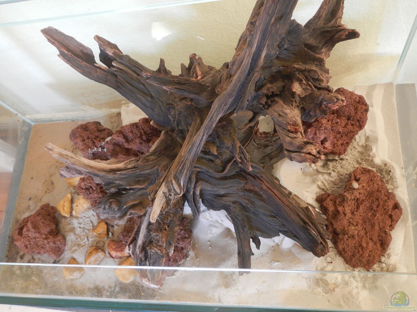 Kiefernwurzel, rotes Lavagestein, Schiefer, Flusssteine und -kiesel