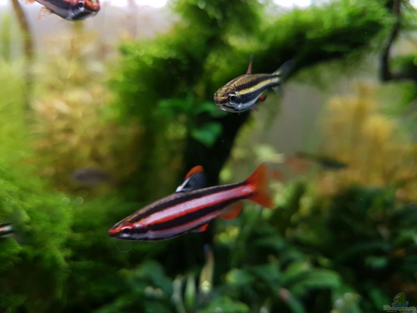 Der bunte Mix des Besatzes: In dem Becken sammeln sich alle meine "Restbestände" aus meinen anderen Aquarien. Da ich mich von den Tieren nicht trennen kann und meistens auch nur noch 1 bis 3 Tiere einer Art vorhanden sind, finden sie hier noch einen "Zufluchtsort". Vorerst soll keine Art aufgestockt werden. - 2x Apistogramma panduro (Zwergbuntbarsch 1/1) - 1x Moenkhausia pittieri (Brillantsalmler) - 3x Hyphessobrycon rosaceus var. 'White fin' (Schmucksalmler) - [...]