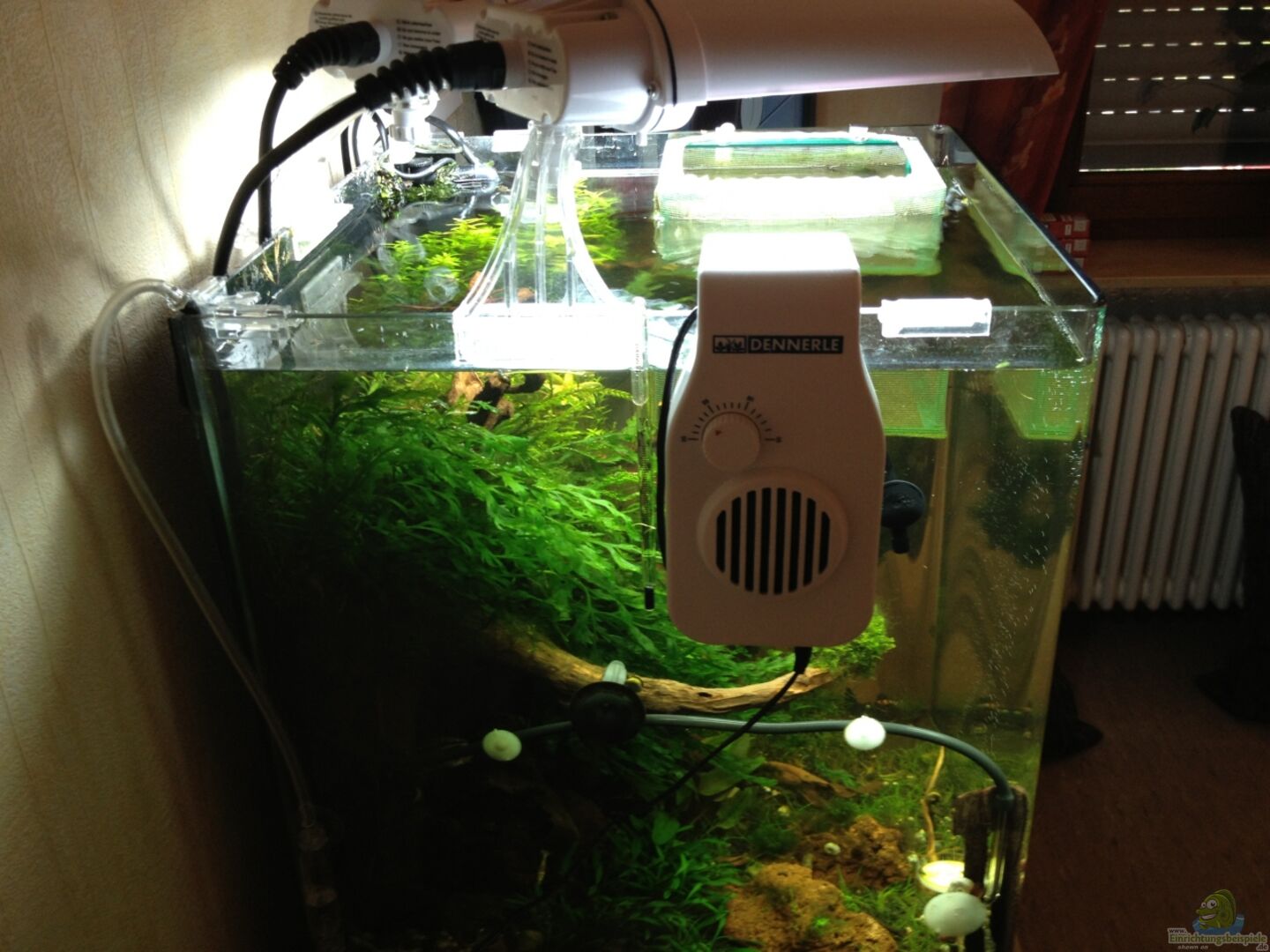 -DENNERLE Nano CO2 Komplett-Set SPACE (mit Magnetventil) -eingespeist durch ADA Pollen 20 mm -gemesen durch CO2 Langzeittest Correct + pH -Dennerle Bodenfluter Eco-Line ThermoTronic - 5 Watt für Becken von 30-60l - Dennerle hangon Glasthermometer -Eheim air pump 100 (Leistung 100 l / h)