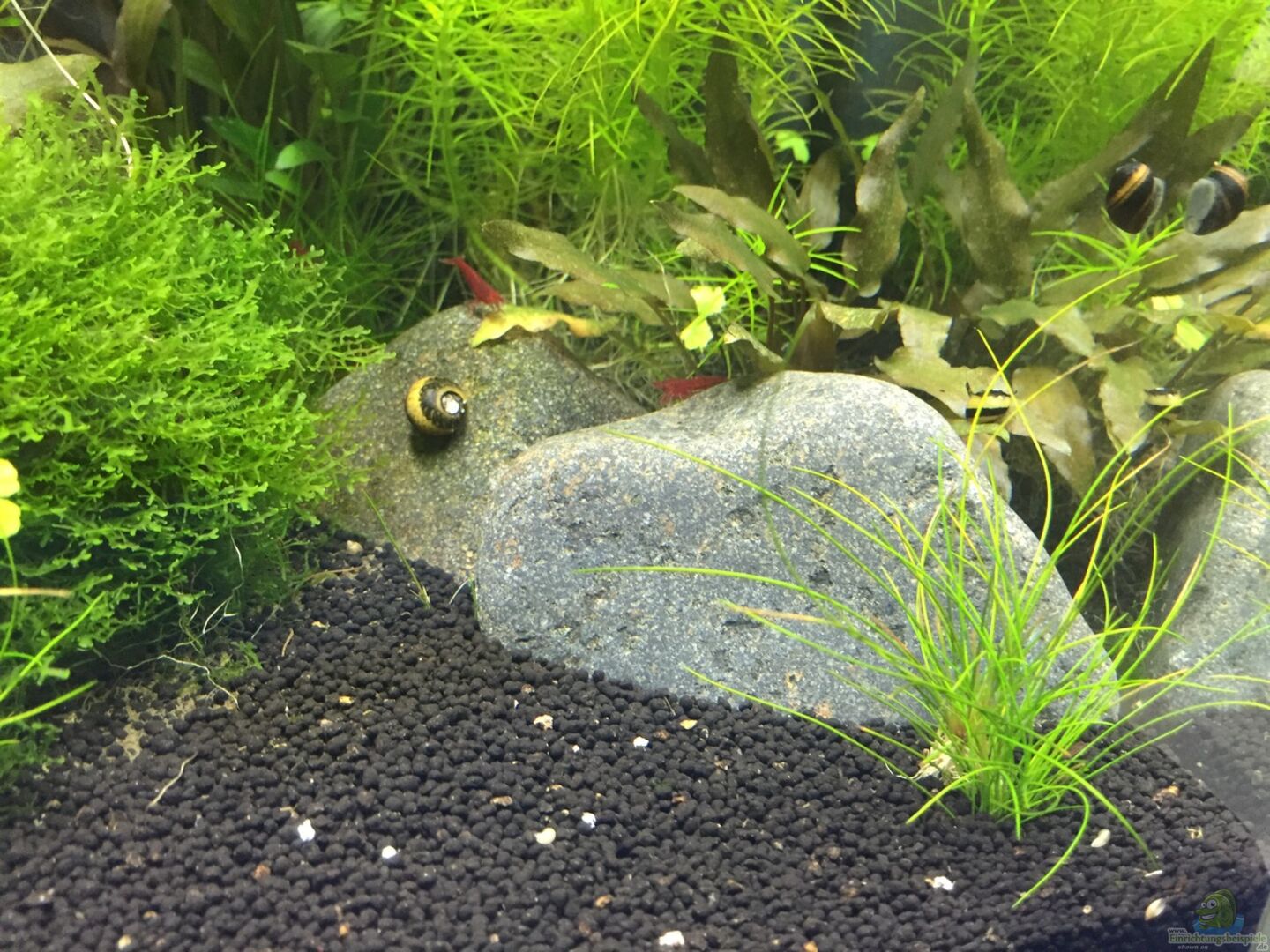 4 Nano Findlinge, von denen einer mit Moos versehen ist