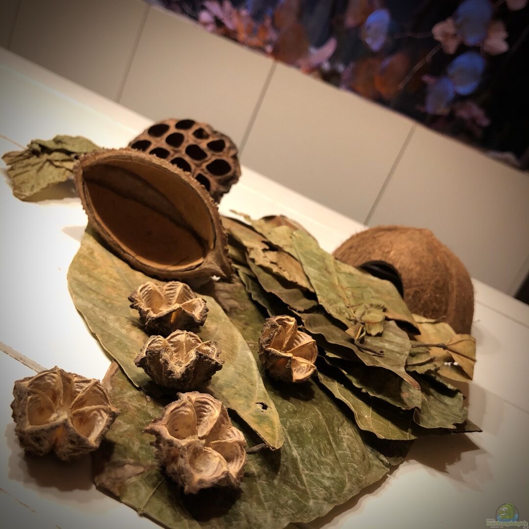 Rückwand dunkelbraun lackiert Manzanita Holz, Stelzwurzeln 20kg Flusskiesel Rotbuchenäste mit Blättern Seemandelbaumrinde (als Höhlen) Keramikhölen für die L333 Bald kommt noch was feines von AQUADECOR dazu ____ 4 x Diskusgold Amazonwood (ausgezogen)