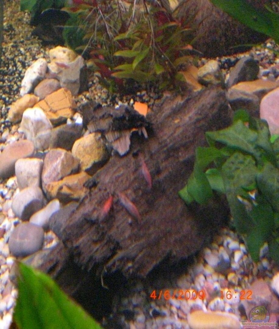 geplant in ca. 4 - 6 Wochen nach Einfahren: Boden: - 8 LDA 25 - malayische Turmdeckelschnecken - zur Pflege des Bodengrundes - 5 - 6 goldene Körbchenmuschel ( corbicula javanicus ) - als zusätzliche Biofilter Mitte: - 10 gelbe Phantomsalmer Mitte / Oben: - 15 blaue Perusalmler 04.06.2009: Beginn Besatzphase: - Einzug von 10 Neocaridina heteropoda var. Red ( Red Fire Zwerggarnele )