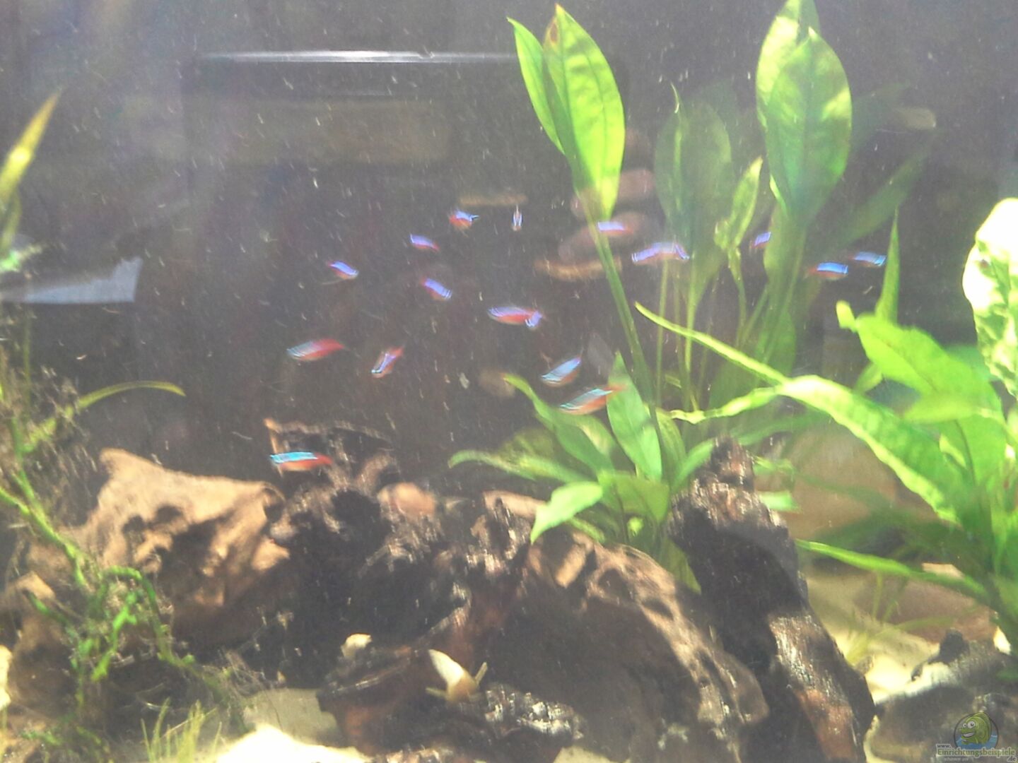 Das aquarium ist marke eigenbau, also ein altes becken komplett auseinadergeholt und neu verkebt, die rueckwand ist aus daemmplatten die mit kunstharz bearbeitet wurde.oben und unten wurden leisten in fichtenholz angebracht und an den ecken wurden aluleisten angeklebt.die obere abdeckung besteht aus plexiglas, die dreimal unterteilt ist.Selbst eingeklebte 3d rueckwand. An den seiten wurden ecken fuer diverse technik eingeklebt. Das becken läuft seit 5.2013 . Einen monat später kam der besatz. Co [...]
