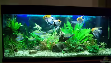 4 Segelflosser (Pterophyllum scalare) 8 Blaue Kongosalmler (4 M/4W) 5 Schmucksalmler (Hyphessobrycon bentosi bentosi) Rest von ursprünglich 10 6 Welse (ein Pärchen L 144, ein Pärchen braune Antennenwelse, zwei Panaquolus maccus) 7 Panzerwelse (vier Panda-Panzerwelse, drei Schachbrettpanzerwelse) 2 Maroni-Buntbarsche (ein Pärchen) 2 Borellis Zwergbuntbarsche (ein Pärchen) 3 Netzschmerlen (Botia lohachata) Au??erdem sind noch vier blaue Neons, zwei Feuersalmler, drei Kardinalfische, [...]