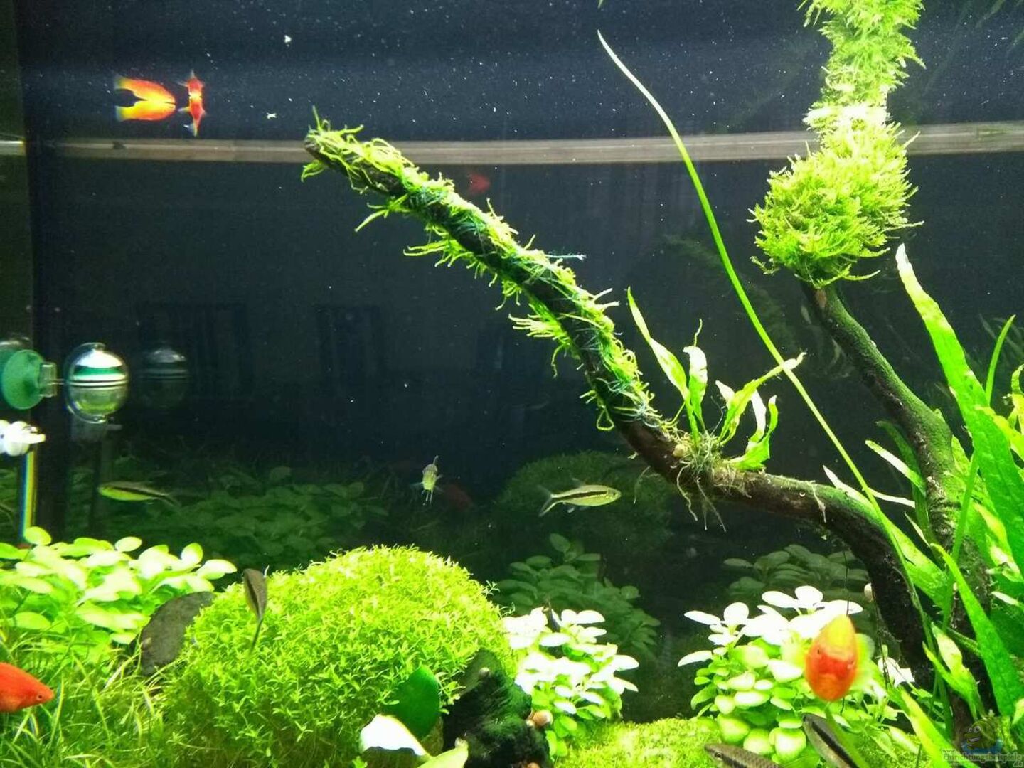 neu Taxiphyllum sp. ´Spiky Moss´ vorn. Hinten Taxiphyllum barbieri ´Javamoos´ aufgebunden von C-NA (32)
