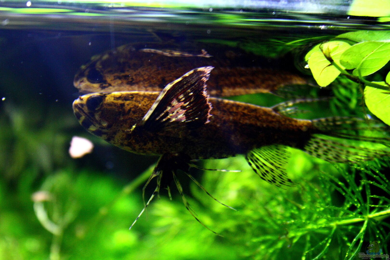 3x Pantodon buchholzi ?/? Heimat: Afrika. Langsam flie??ende Regenwaldbäche und -sümpfe West- und Zentralafrikas Temperatur: 25-30 °C pH-Wert: 6, 0-7, 0 Gesamthärte: 2-10 °dGH Beckengrösse: Pro Tier ca 50x50cm Oberflächenraum Haltung: Verschiedene Angaben, meist Gruppen oder Paarhaltung Ernährung: Anflugnahrung in Form verschiedener Insekten Den Oberflächenbereich bewohnt ein junges Paar dieser Schmetterlingsfische. Das Beckenvolumen wirkt zunächst [...]