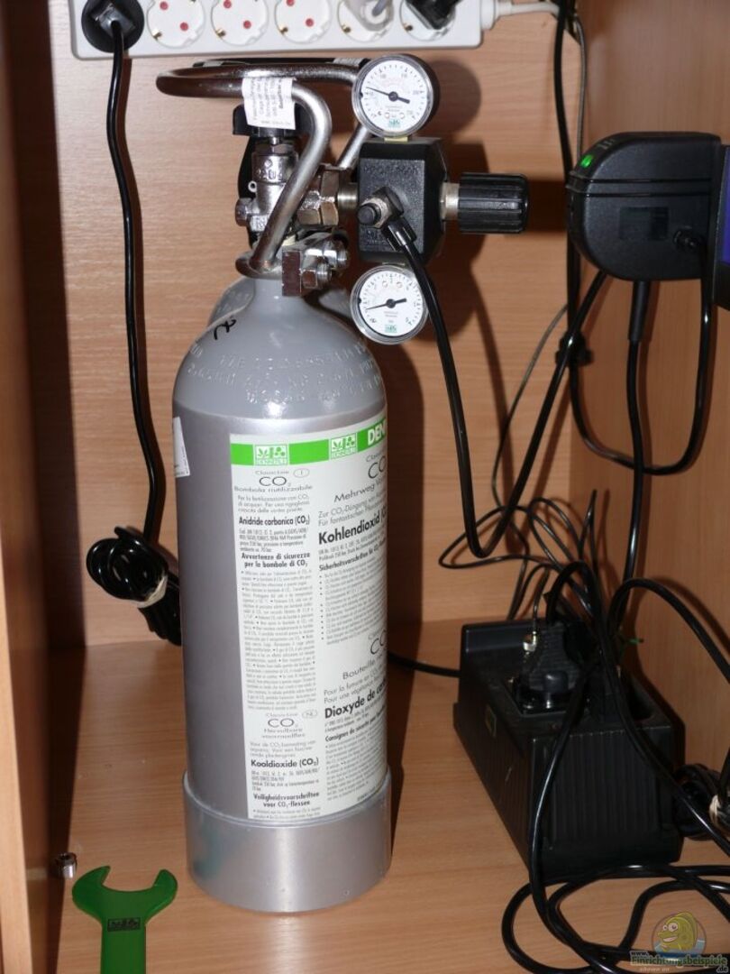 CO2 Anlage mit 2000g Mehrwegflasche, Druckminderer und Nachtabschaltung von Dennerle, Zugabe mit JBL vario Reaktor mit 2 Erweiterungssets, Dennerle Profi-Line pH-Controller Evolution, Jäger Eheim Regelheizstab 250 W, UV-C Klärer 36 W von JBL