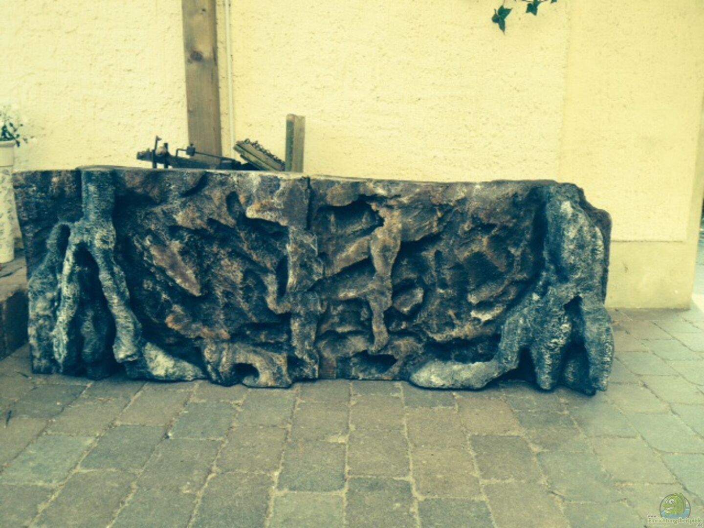 Mangrovenwurzeln 3D- Rückwand (eigenbau) Aus Styropor. Links und Rechts Ausschnitte und ??ffnungen für die Technik gelassen.
