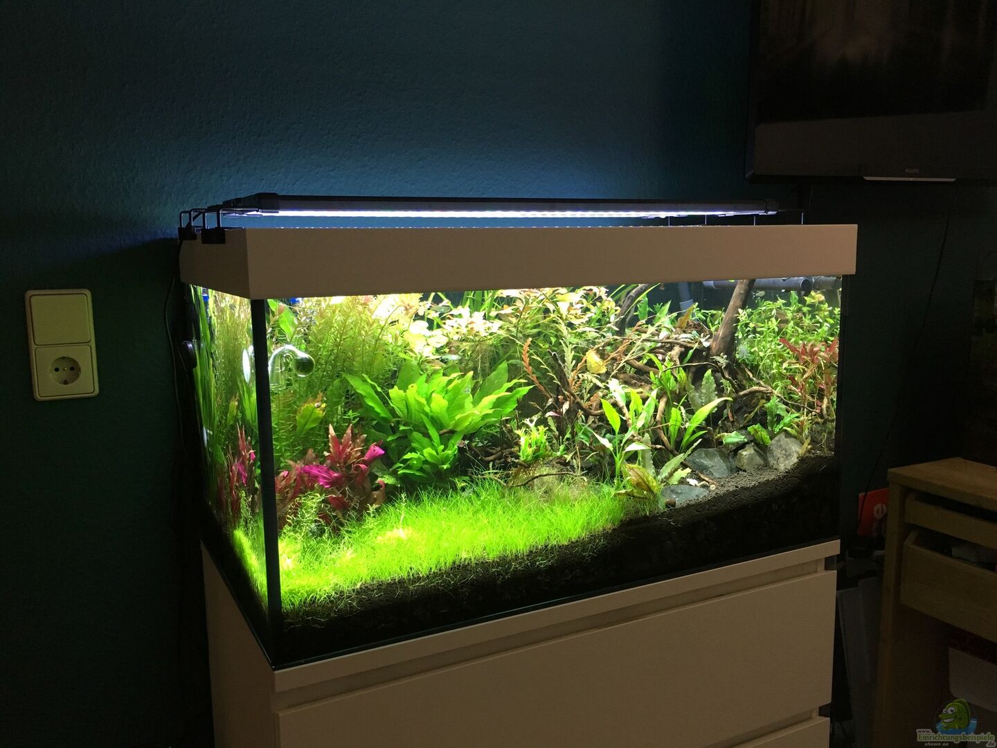 Das Becken ist eine Sonderanfertigung, und hat die Ma??e des Unterschranks. Unterschrank ist eine MALM Kommode von Ikea. Davor stand ein 130l Becken ohne Verstärkung darauf. Jetzt ist sie mit Stahlwinkeln verstärkt, damit ich beruhigt schlafen kann.