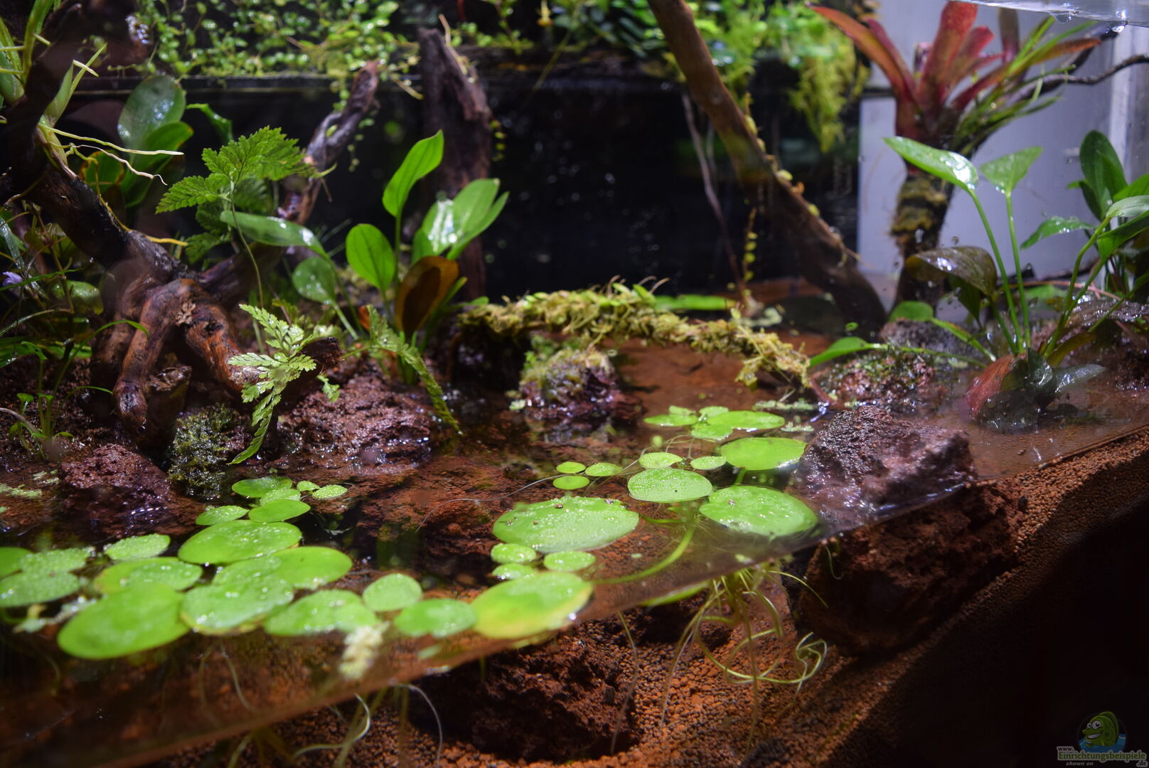 Sonderanfertigung von Aquarien und Terrarienbau Jebramek in Nürnberg. Der Wasserstand beträgt 35 cm. Ein mit Kabelbindern zusammen gebundenes Aluminium-Gestell befindet sich in der Abdeckung und fungiert als Decke, um darin Wurzeln anzubinden, die ebenso mit Kabelbindern zusammengehalten werden Umgestaltung am 19.11.2016 Der Wasserstand beträgt nun ca. 15 cm. Ich habe versucht im unteren Bereich einen Bachlauf 2 Landteilen zu gestalten. Dabei habe ich Brocken von isländischer Lava, [...]