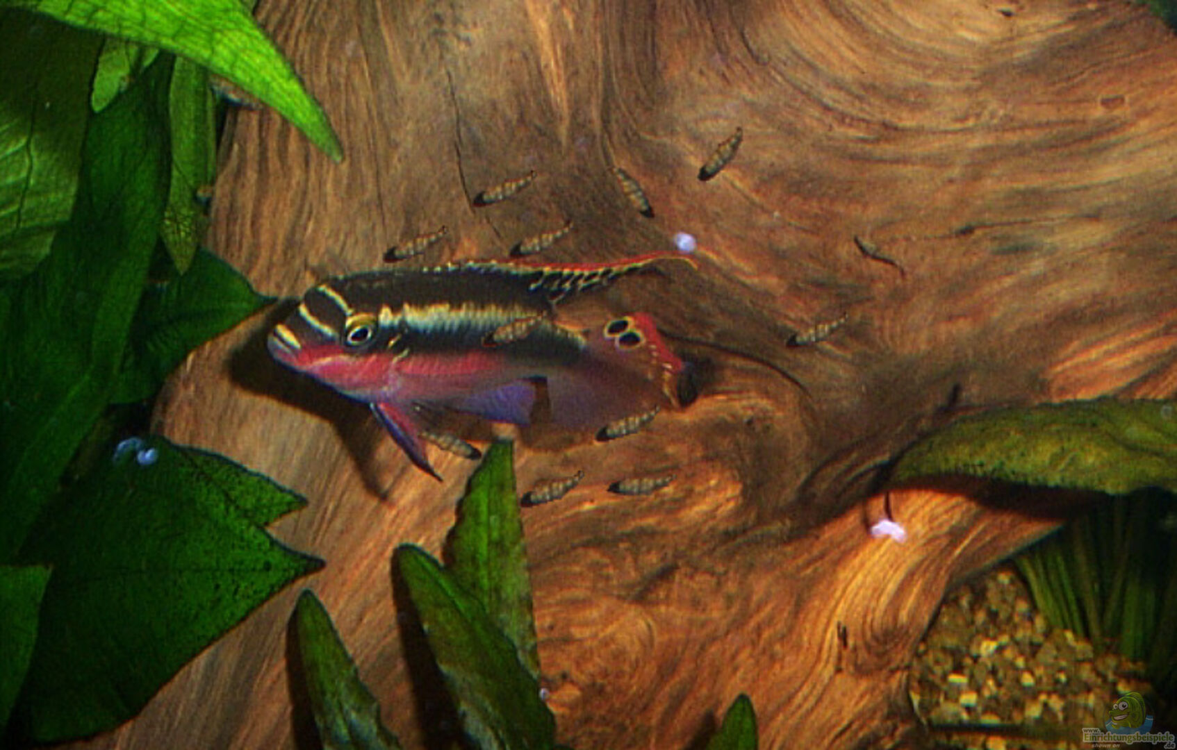 1/1 Maronibuntbarsch 1/1 Antennenwels 2 Saugschmerlen 2 Schönflossenbarben 2 Rüsselbarben 10 Neon 3/3 Schwarze Phantomsalmler 1/1 Purpurprachtbarsch Pelmachromis kribensis