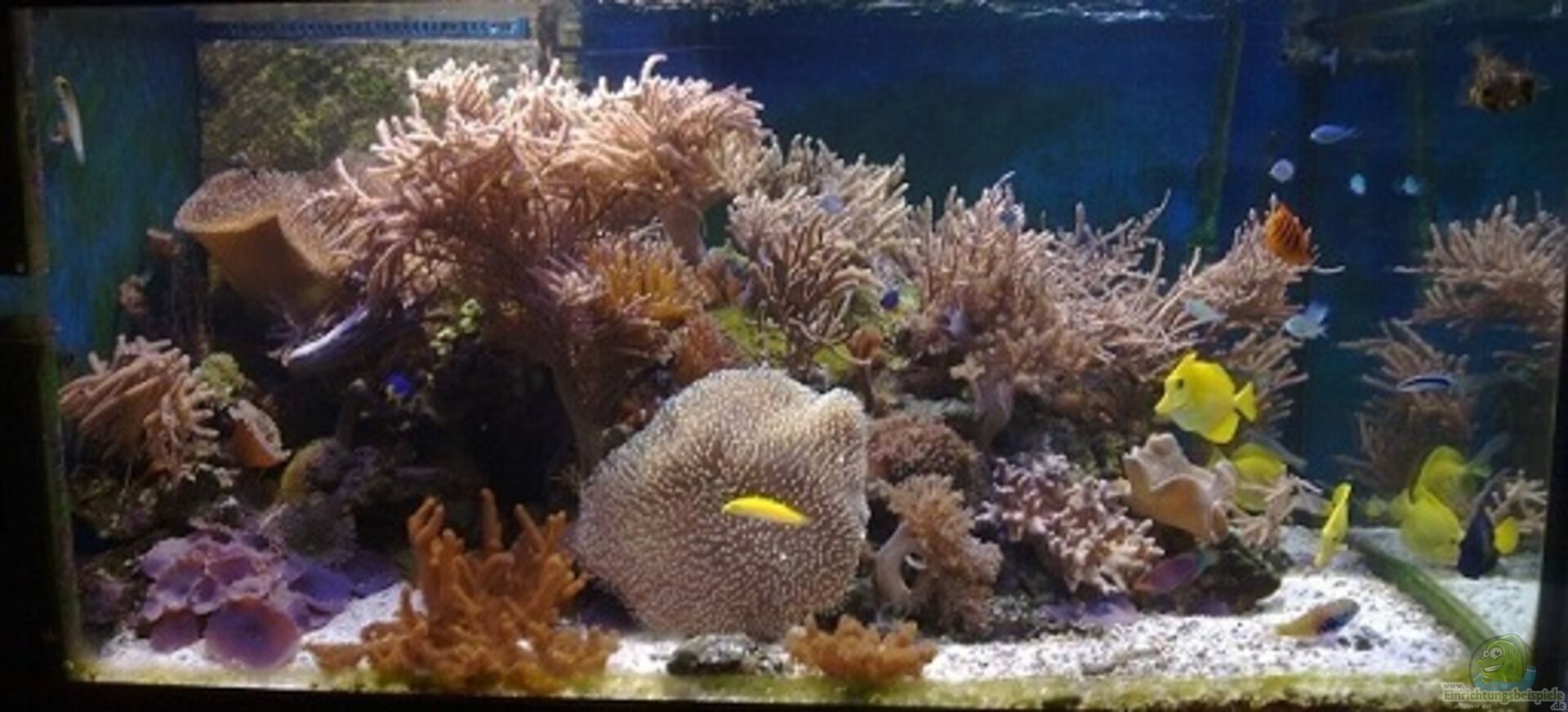 Das Becken wurde am 25.10.2010 neu eingerichtet und der Bestatz an Fischen Steinen und Korallen aus meinen vorherigen 2 Becken übernommen Zum Becken gehört noch ein 160 l Filterbecken mit 3 Kammern. In einer Kammer ist Lebendgestein und Caulerpa, in der 2. Kammer ist die Filtertechnik und die 3.Kammer dient zur Niveauregulierung