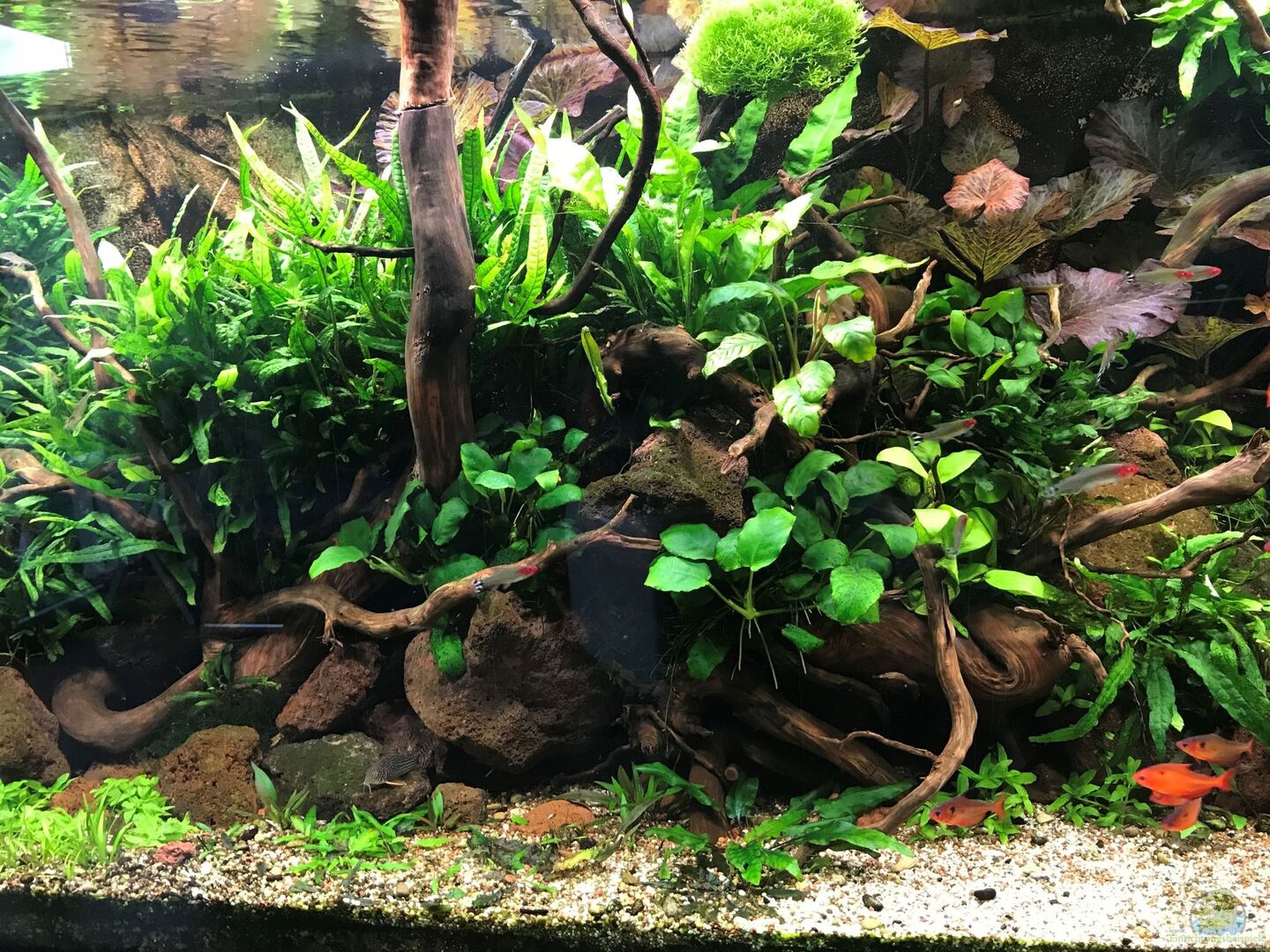 Der Rest der Einrichtung besteht aus Moorwurzeln, die ich mit Aquariensilikon zusammen geklebt habe. Rote Lava in Verbindung mit der Juwel "Rock" Rückwand rundet die Einrichtung ab. Ich habe statt Pflanzen noch weiteres Talawa Wood eingebracht, welches sich wirklich hervorragend als Wurzelholz im AQ macht. Es dunkelt nicht so arg ab, mit der Zeit und hält sich extrem lange unter Wasser. Man muss es allerdings extrem lange wässern oder mit Steinen beschweren. Es kann schon mal [...]