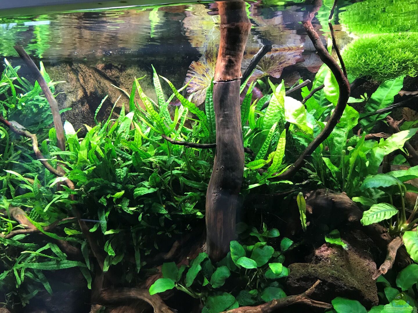 Der Rest der Einrichtung besteht aus Moorwurzeln, die ich mit Aquariensilikon zusammen geklebt habe. Rote Lava in Verbindung mit der Juwel "Rock" Rückwand rundet die Einrichtung ab. Ich habe statt Pflanzen noch weiteres Talawa Wood eingebracht, welches sich wirklich hervorragend als Wurzelholz im AQ macht. Es dunkelt nicht so arg ab, mit der Zeit und hält sich extrem lange unter Wasser. Man muss es allerdings extrem lange wässern oder mit Steinen beschweren. Es kann schon mal [...]