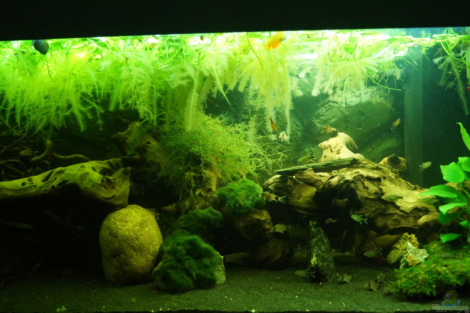 Aquariumrückwand wurde aus Styrodur und Acrylfarben gemacht und hinter der AQ Rückwand aufgestellt