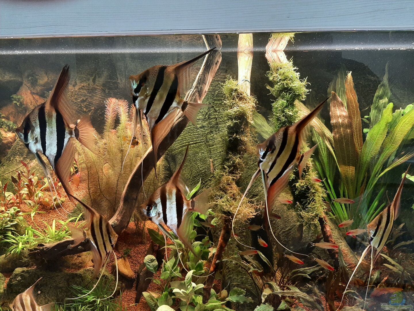 Aktueller Besatz, werde mich aber von den Dorsigera trennen; total schöne Fische, besonders in der Brutzeit, aber dann auch ziemlich aggressiv. Stören dann schon sehr das Zusammenleben der Anderen. - 8 Altum Rio Orinoco Red - 2/3 Laetacara dorsigera - 1/1 Microgeophagus ramirezi - 10 Corydoras sterbai - 45 Hemmigrammus bleheri - 20 Amano-Garnelen - 6 Zebrarennschnecken