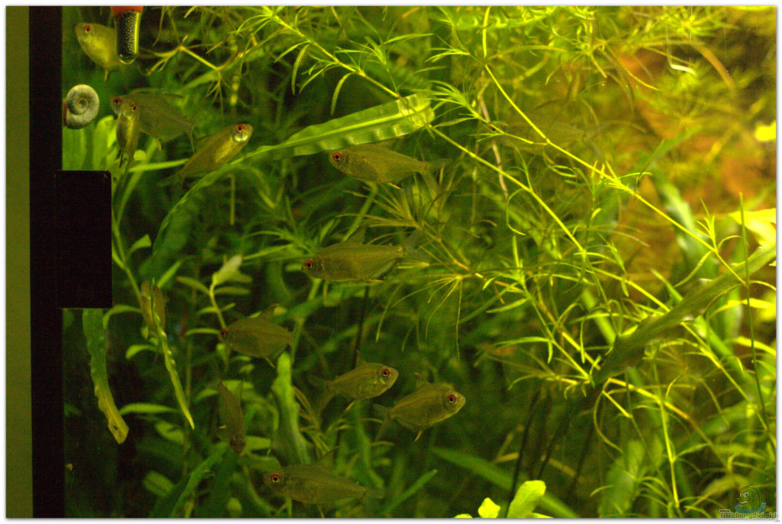 13 Zitronensalmler Hyphessobrycon pulchripinnis 6 Neonsalmler Pararcheirodon innesi 2/1 Prachtguppies (Poecilia reticulata) mit Nachwuchs 10 Ohrgitterharnischwelse 2 Panaqolus sp. aff. maccus L448, Zierbinden-Zwergschilderwels Posthornschnecken, Turmdeckelschnecken, Zebrarennschnecken unzählige Red Fire Zwerggarnelen Neocaridina davidi var. red sowie var. black