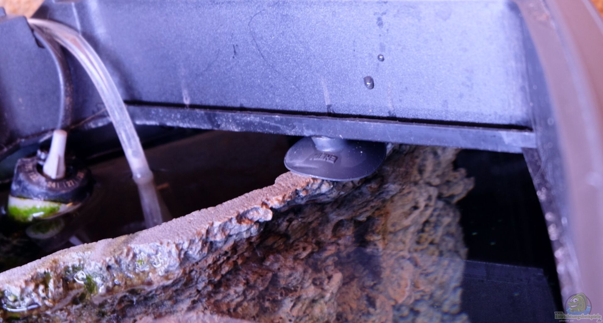 Strömungspumpe: Eheim streamON 1800 - 2, 8 W - 1800 l/h von 10:00 bis 20:00 Uhr Luftpumpe: Eheim air pump 200 - 3, 5 W - 2 Ausströmer 2x Tetra CV 4 Rückschlagventil Die Ausströmer wurden in zwei Bereichen hinter der Rückwand angebracht, in denen wenig Wasserbewegung herrscht und soll auch eine Kahmhautbildung verhindern. Laufzeit morgens und abends jeweils 1/4 h. Wasserwechselpumpe: hydor - 4, 5 W - 250 l/h (dient mehr oder weniger nur zum "Ansaugen", [...]