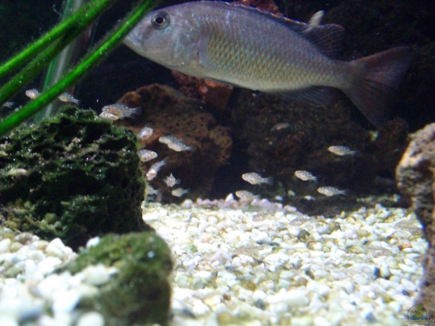 Räuber: - Nimbochromis fuscotaeniatus (1/2) - Dimidiochromis compressiceps WFNZ F1 (2/3) - Sciaenochromis fryeri (1/0) (Altbestand aus anderem Becken. Darf hier seinen Lebensabend verbringen) Pflanzenfresser / Mbunas: - Pseudotropheus saulosi (1/1) - Pseudotropheus callainos bright blue (1/2) - Pseudotropheus kingsizei (1/0) (Altbestand aus anderem Becken. Darf hier seinen Lebensabend verbringen) Welse: - Synodontis gallinae (3) Zielbesatz: - Pseudotropheus saulosi [...]