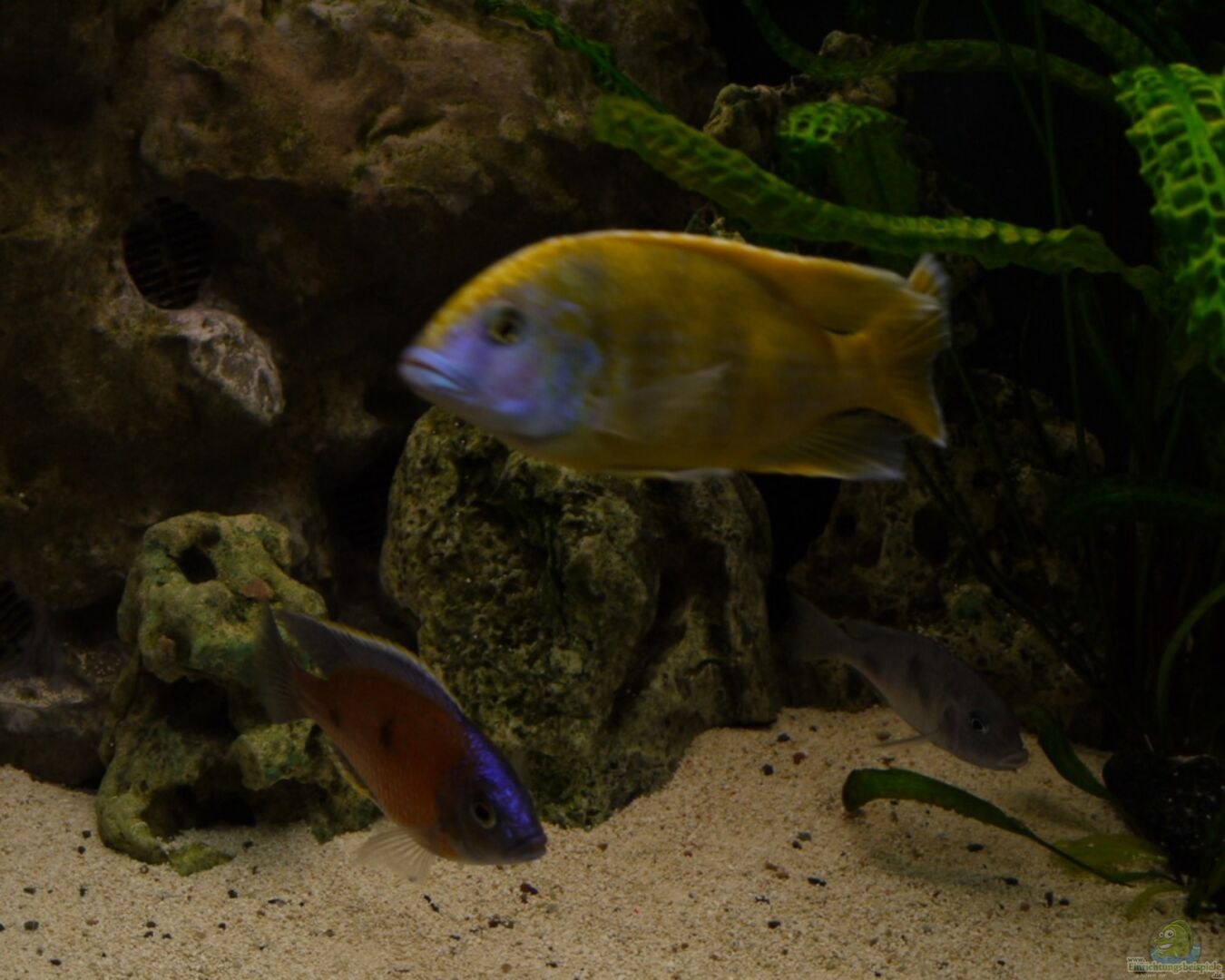 Hier findest Du traumhaft schöne Aquarien, die mit Buntbarschen der Art Nimbochromis polystigma (Vielfleckmaulbrüter) aus dem Malawisee besetzt sind.