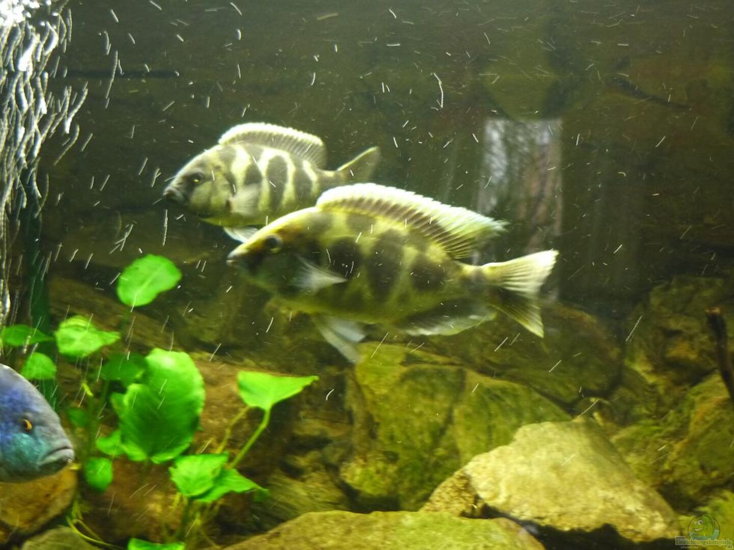 Hier findest Du traumhaft schöne Aquarien, die mit Buntbarschen der Art Nimbochromis fuscotaeniatus aus dem Malawisee besetzt sind.