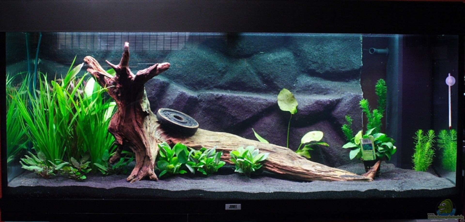 -Juwel Rio 240 (eingebauter Innenfilter) -Hintergrund selbstgebaut (Styropor, Fliesenkleber, Sand, Sabberlack)