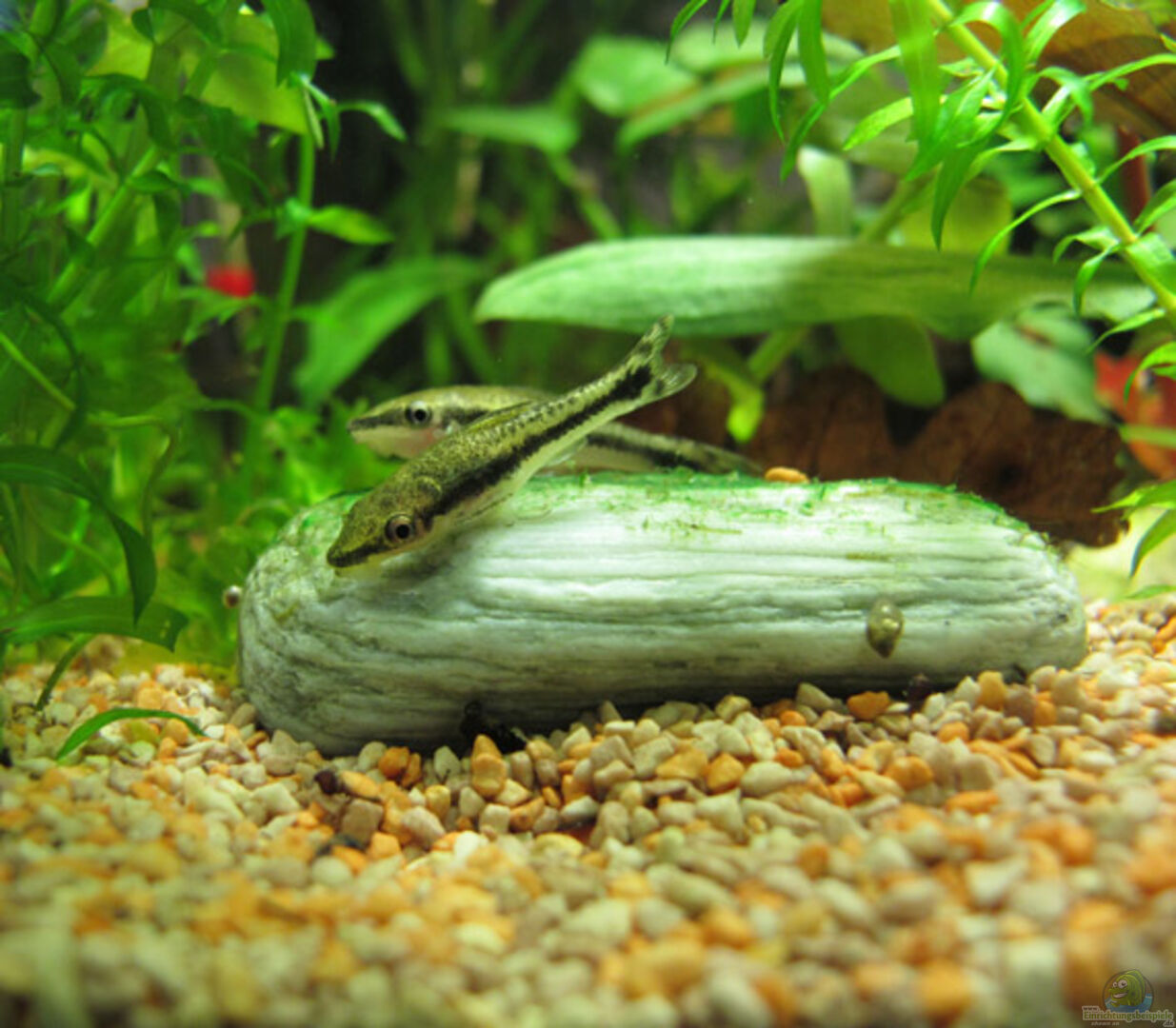 Fische 3 Otocinclus macrospilus Gekauft als O. affinis (es waren mal 6, zwei Fische haben die Eingewöhnungszeit nicht überlebt, ein weiterer starb 7 Wochen später) Laut Aussage im Laden sind es Nachzucht-Fische, da bin ich aber eher skeptisch. Wenn ja, dann wurden sie im Laden falsch gehalten/gefüttert oder waren gestresst, sonst wären sie nicht so ausgehungert gewesen, als sie in mein Becken kamen. 5 Otocinclus vittatus od. vestitus Gekauft als O. affinis Diese Fische waren in [...]