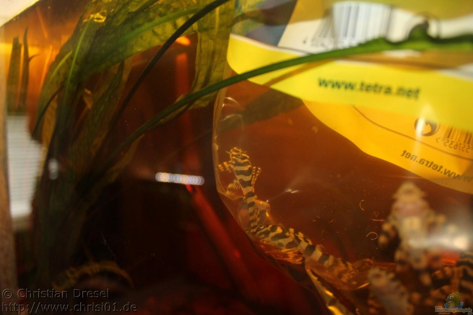 5 L 134 Peckoltia compta Geschlecht sind alle noch absolut unbekannt. Dieser L-Wels besitzt mit seiner schwarz/wei??en Zeichnung ein sehr schönes Muster. Er ist für Welsanfänger geeignet und versteckt sich nicht soviel wie andere L-Welse. So ist es auch Möglich, diese Tiere ab und zu mal Tagsüber im Aquarium zu beobachten. Meine Tiere wurden in Leitungswasser aufgezogen und mir im Alter von 6 Monaten abgegeben. Somit ist der "Geburtstermin" der 5 Welse etwa auf Oktober 2012 zu [...]