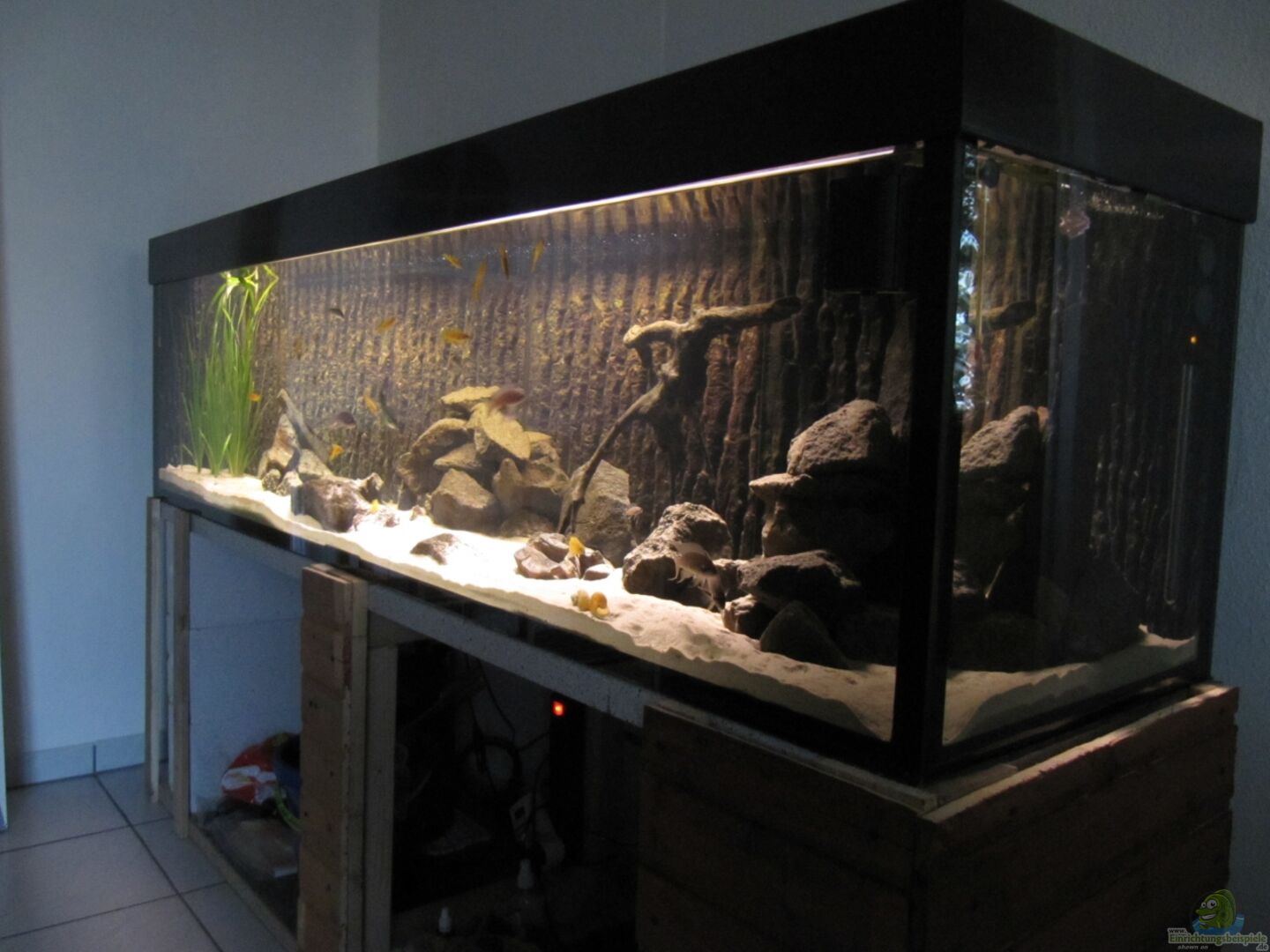 Hallo Aquarium Freunde!! Ich stelle euch hier mein Lake Tanganjika 500 l Aquarium vor! Das Aquarium wurde vom Aquarien Bauer (André Geschwill) gefertigt und hat die masse 200 x 50 x 50 der Boden des Beckens besteht aus zwei teilen zur besseren Gewichtsverlagerung! Au??erdem ist das Becken an den Silikonnähten mit Glasstreifen geschützt! Das Untergestell ist eine eigen Konstruktion und besteht aus Ytong Steinen und einer Balkenkonstruktion als stütze! Als Auflage dienen zwei Küchenplatten [...]