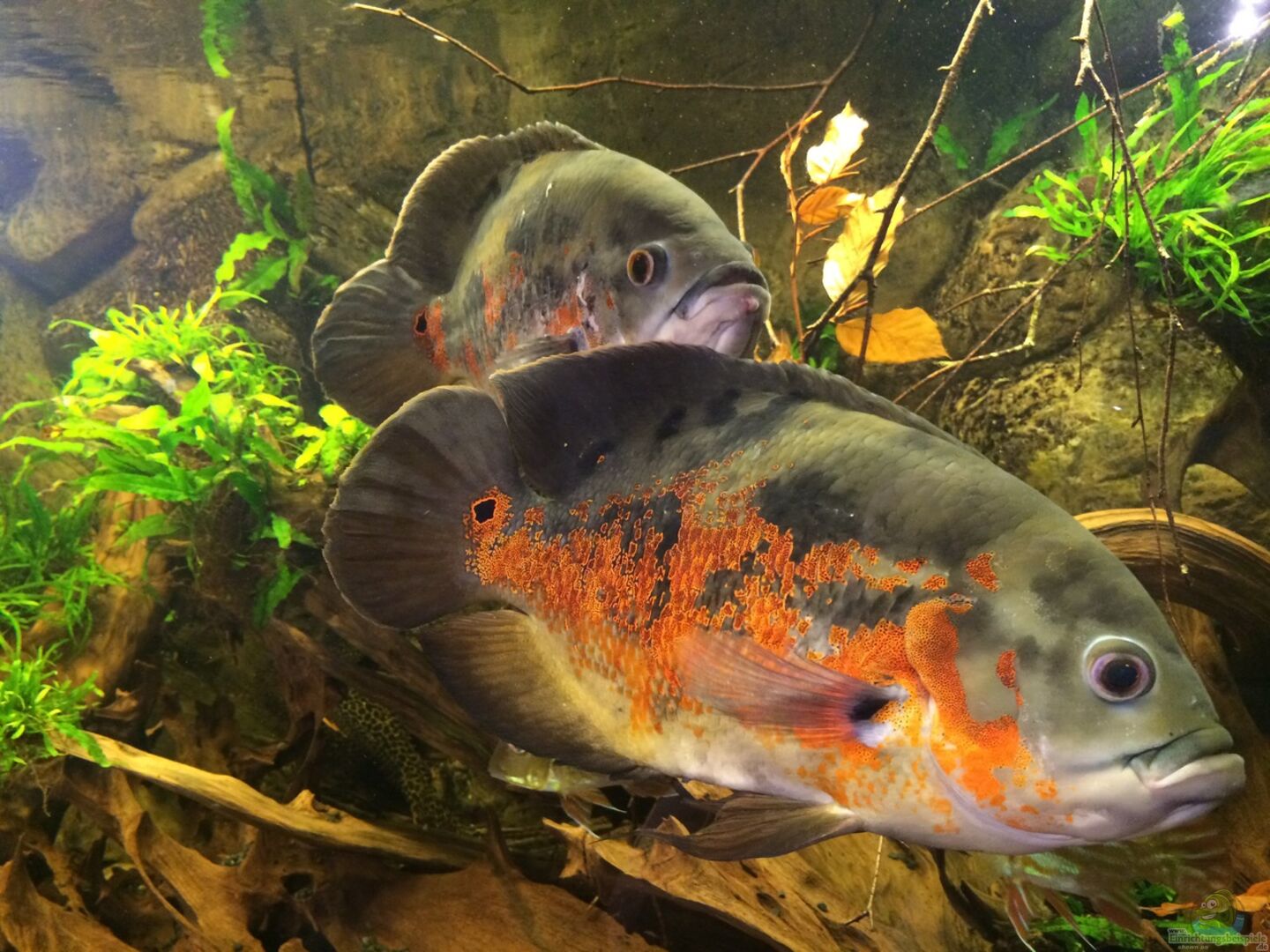 Wie der Name schon sagt ist der "Hauptbesatz" ein Pärchen Astronotus ocellatus. wahrscheinlich "Bahia Red". Diese pflege ich jetzt seit 2 Jahren, nachdem ich sie als fast adulte Tiere aus einer 6er Gruppe übernommen habe. Sie haben noch nicht geleicht, da Sie aber seit damals gut miteinander auskommen, denke ich es ist ein Pärchen. Es befinden sich auch noch ein Pärchen Satanoperca sp. "Redlip" (18 cm, ca 5 Jahre alt) und eine Gruppe Geophagus winemilleri [...]