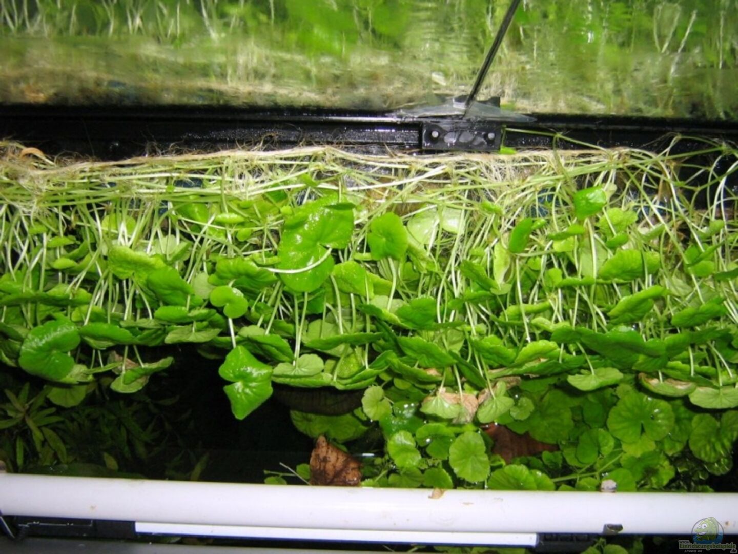 - Anubias barteri var. nana - Ceratophyllum demersum - Didiplis diandra - Echinodorus cordifolius - Echinodorus tenellus - Eusteralis stellata - Hydrocotyle leucocephala - Hydrocotyle verticala - Lysimachia nummularia - Microsorium pteropus - Vesicularia dubyana auf dem Düsenrohr des Filters gebunden