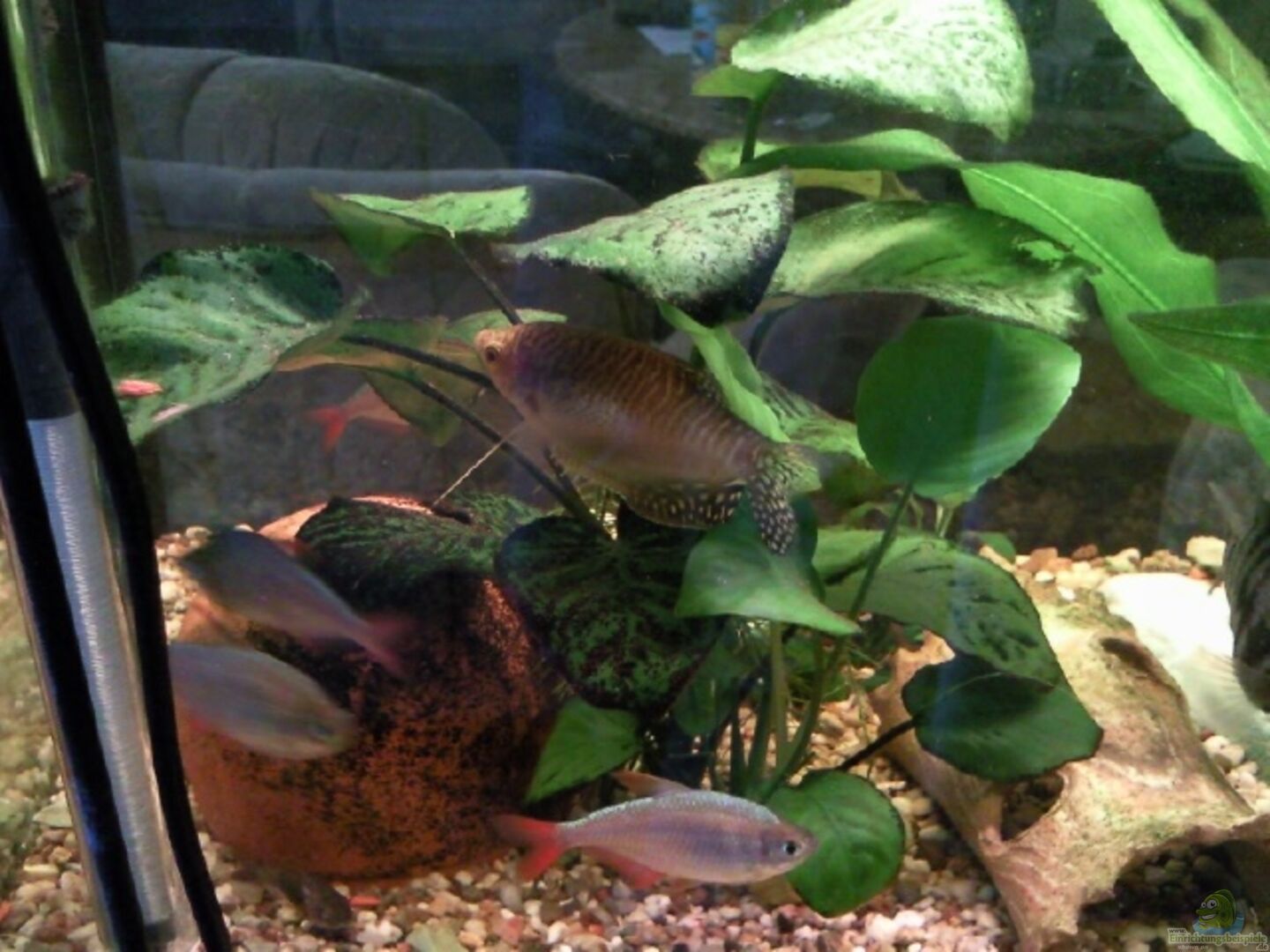 10xRote Neon, M-W nicht genau zu bestimmen da noch nicht alle Adult, 8xMetallpanzerwelse, 2xM6xW, 5xKirschflecksalmler, Geschlechter nicht zu best. 5xBlau-Rote Kolumbiensalmler, Geschl. auch nicht best., 2xW.Gelbe Fadenfische [vertragen sich nicht mit M., deswegen m. in anderem Aq.] 2xBraune Antennenwelse M.