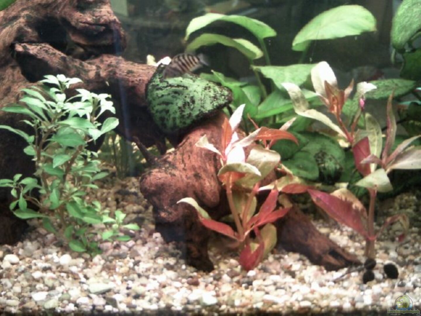 Anubias Barteri, Echinodorus Bleherie- Amazonas schwertpflanze gro??, Wend`s Wasserkelch [genaue Sorte kenne ich nicht], kleine Rosettenpflanzen 2Stück Echinodorus Rainers Kitty, Sind alles Mutterpflanzen und Ableger aus einem 80er Aq. das ich als mein erstes von meinem Opa geerbt hatte.2x rotes Papageienblatt, 2x schmalblättriges Papageienblatt, 3x feines Sumatrafarn, 2x was ich für rote Ludwiegien halte habe ich neu dazugepflanzt. Au??erdem habe ich verschiedene steine mit Javamoos umbunden [...]