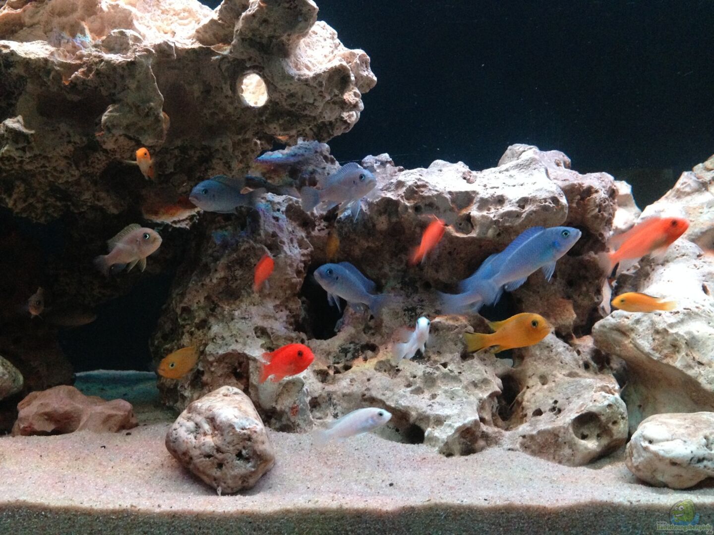 Nach ausgiebigen Gesprächen bei Aqua Treff haben wir folgenden Besatz zusammengestellt: Labidochromis Yellow 2/3 Labidochromis Chisumulae 2/3 Pseudotropheus Saulosi 1 Matriaclima Daktari Hai Reef 2/4 Matriaclima Estherae Red/Red 2/3 Matriaclima Callainos 2/5