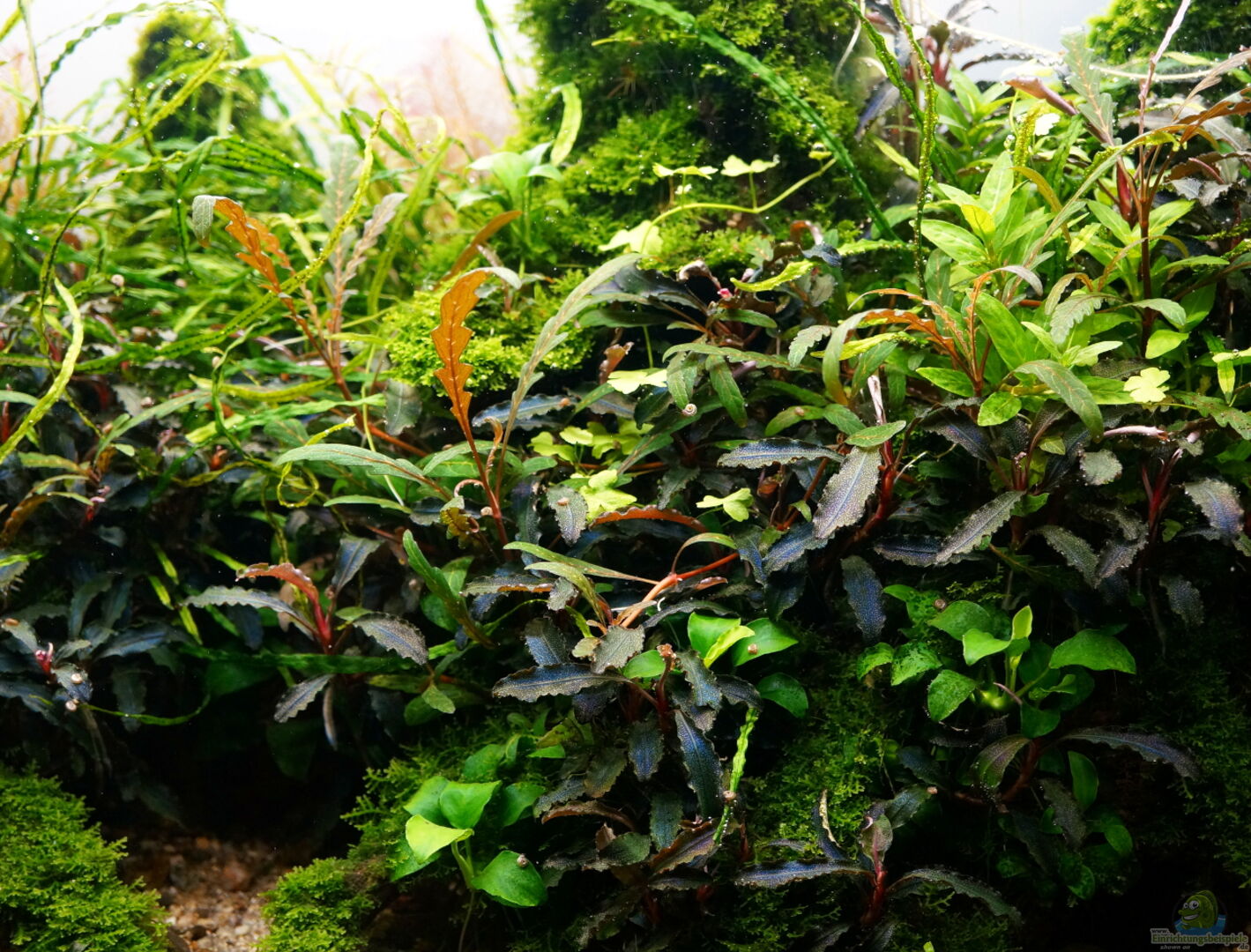 1. Rotala wallichii 2. Ludwigia repens 3. Bucephalandra sp. 'Kedagang' 4. Hygrophila pinnatifida 5. Rotala rotundifolia 6. Anubias barteri var. nana 'Petite' 7. Microsorum pteropus "Needle Leaf" 8. Hemianthus callitrichoides "Cuba" 9. Riccardia spp. 10. Cryptocoryne wendtii 11. Cryptocoryne ?? willisii "nevillii" 12. Hydrocotyle cf. tripartita 13. Staurogyne repens 14. Limnobium laevigatum 15. Bucephalandra sp. "Mini [...]