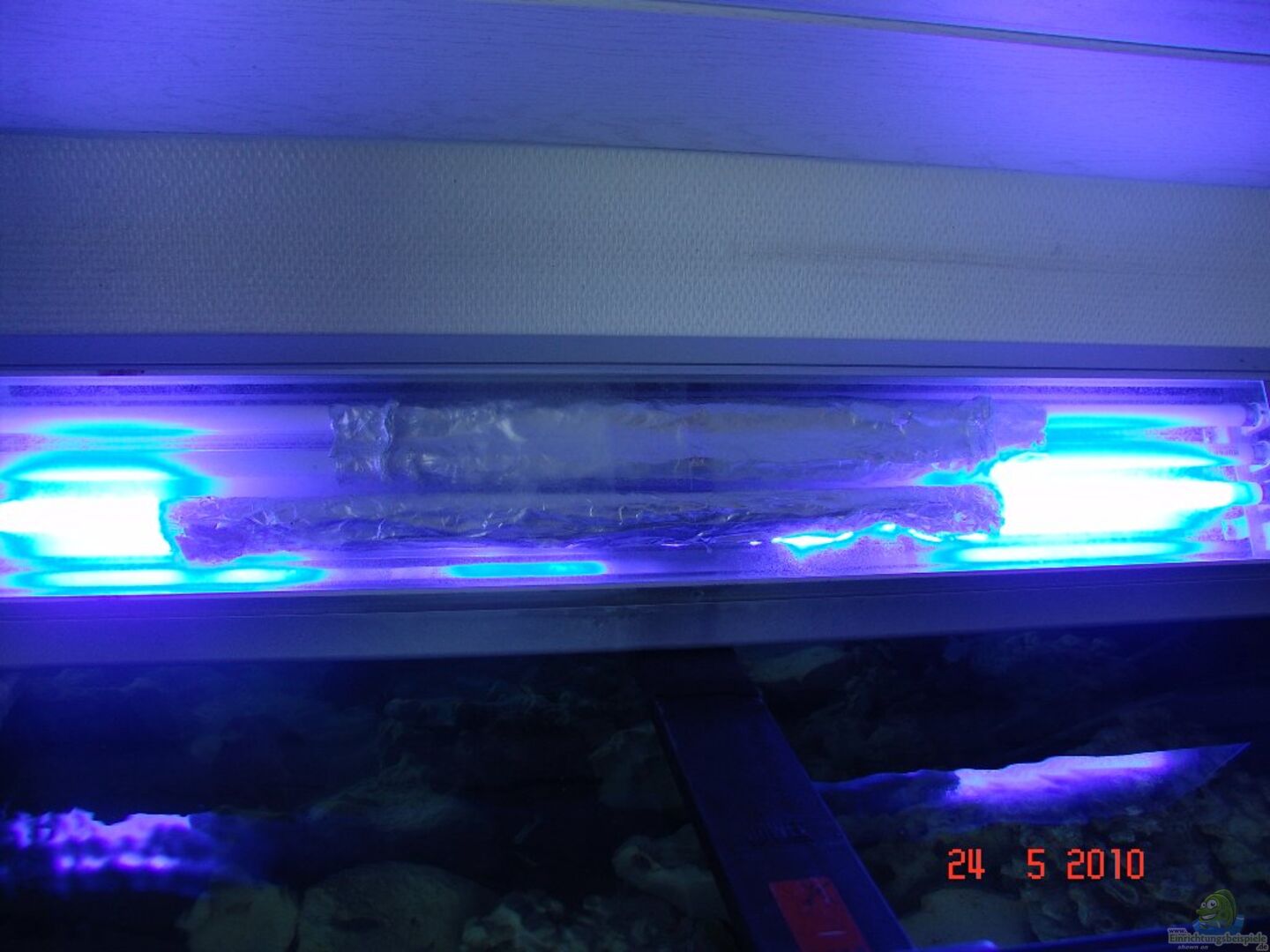 Strömungspumpe 4000l/h 5 Watt. Membranpumpe 220 l/h. Immer in 2 Stundenabständen. Stabheizer 200 Watt
