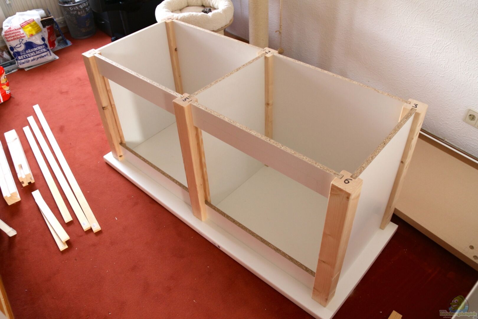 Becken von Rutschke Aquaristik, Floatglas geschliffen, Stärke 10mm, Sto??-und Wulstverklebung. Unterschrank im Eigenbau 150x60x72 mit zwei Türen (siehe Blog 2) Zwischen Unterschrank und Aquarium befindet sich eine Moosgummiplatte zum Ausgleich von Unebenheiten. Der Beckenboden innen ist mit einer 2 cm Styroporplatte ausgelegt als Druckausgleich und zum Schutz des Bodenglases. Darstellung einer ??bergangszone des Malawisees. Von der rechten Beckenhälfte, mit einigen Steinaufbauten [...]
