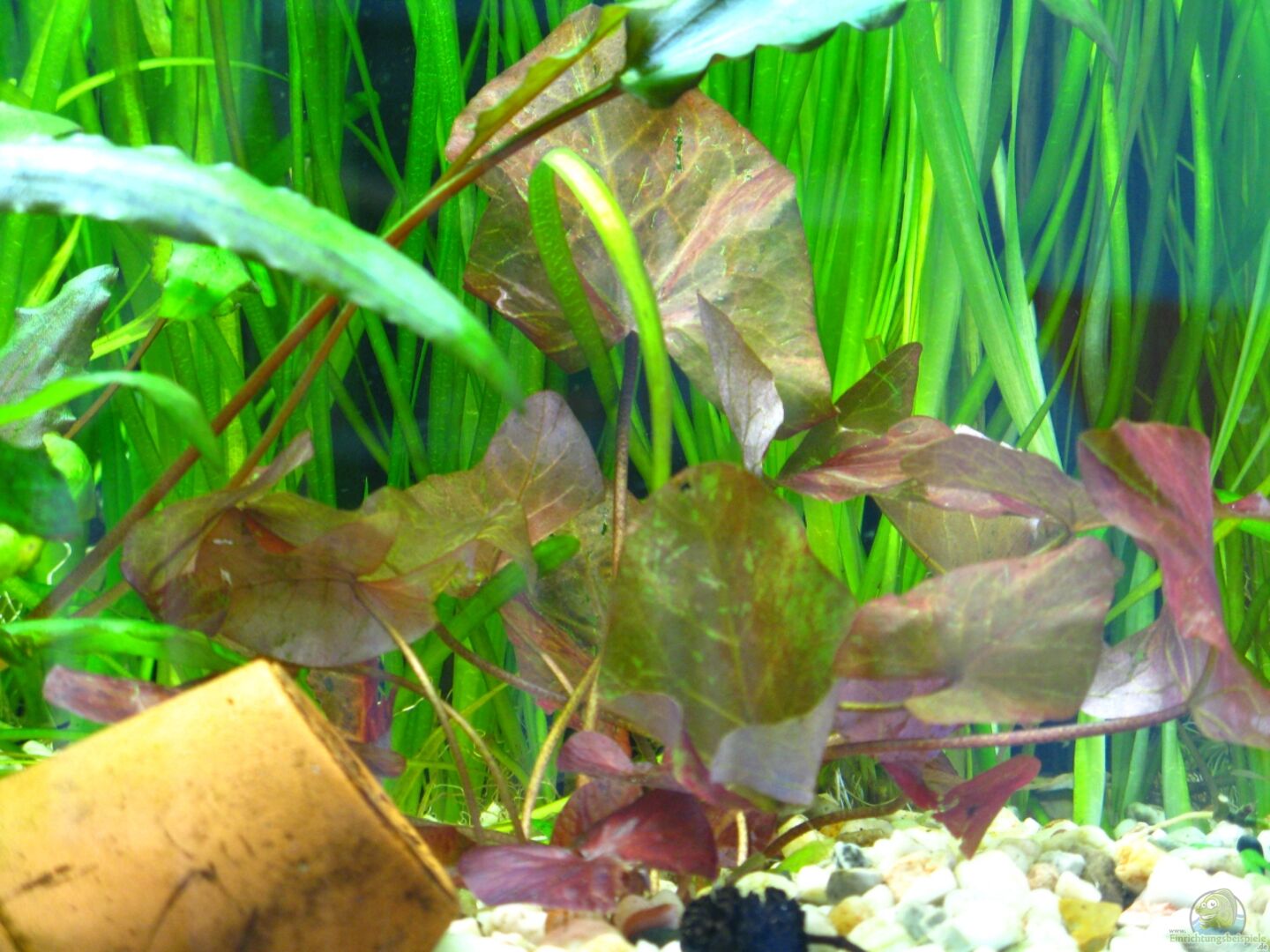 Ziel ist es, in der rechten Beckenhälfte einen dichten Wasserpflanzendschungel zu bilden, welcher auch den Filterkasten verdeckt. Die Vielfalt der Pflanzen wird in den nächsten Monaten nach und nach erhöht. Die linke Seite wird von der Mangrovenwurzel und einer grossen Solitärpflanze (Echinodorus bleheri) dominiert. Links vorne wird das Becken mittels Schwimmpflanzen abgedunkelt. Hintergrund: - Vallisneria americana, wuchert enorm, Ausdünnung jede Woche notwendig - Echinodorus bleheri, [...]
