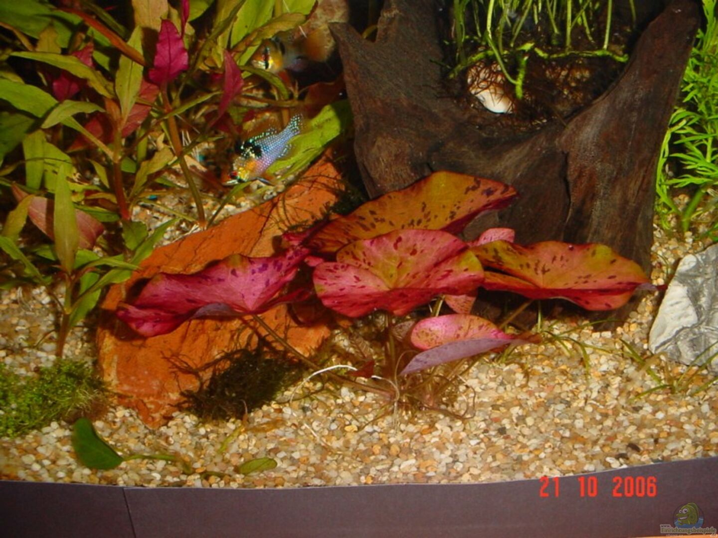Alternanthera reineckii (Papageienblatt) Bacopa monnieri (Kleines Fettblatt) Ceratophyllum demersum (Hornkraut) Hemianthus callitrichoides "cuba" (Zwergperlenkraut) Hygrophila difformis (Indischer Wasserstern) Hygrophila polysperma (Indischer Wasserfreund) Microsorum pteropus (Javafarn) Nymphaea lotus var. rubra (Roter Tigerlotus) Nymphoides aquatica (Bananenpflanze) Pistia stratiotes (Muschelblumen) Vesicularia dubyana (Javamoos) Ableger von: Anubis "nana" Echinodorus [...]