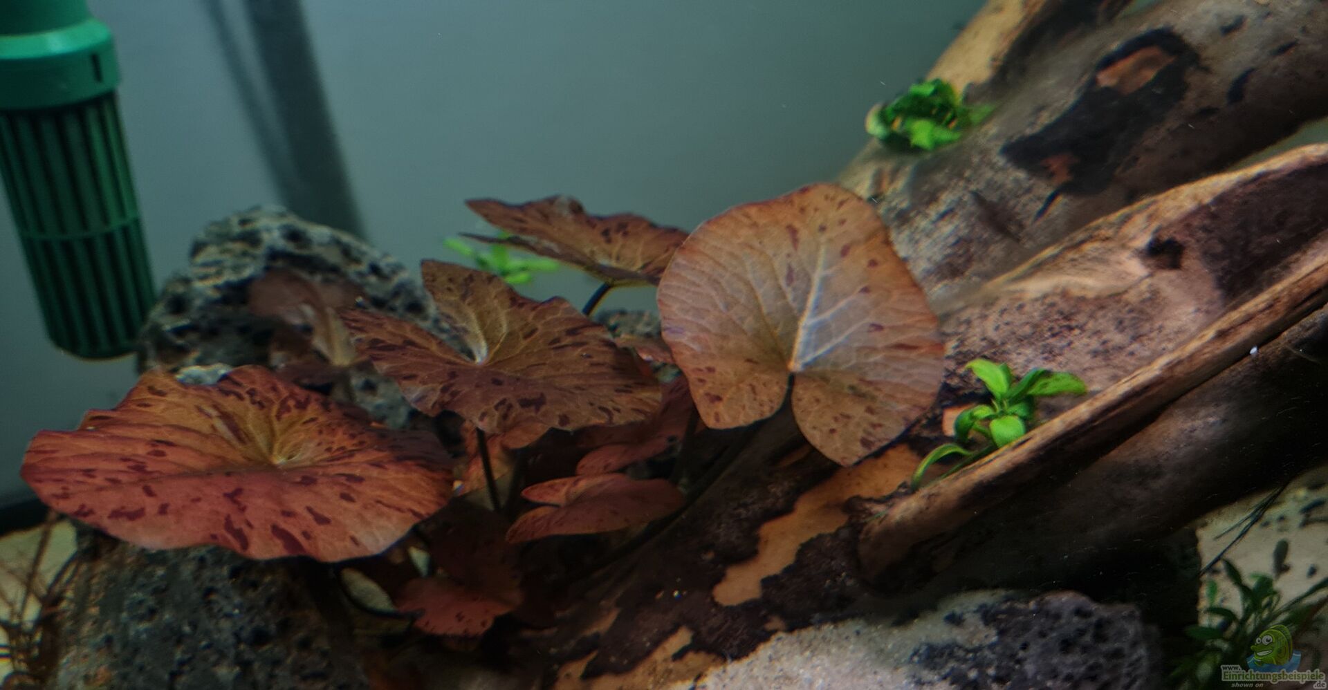 Folgende Bepflanzung wurde bei diesem Layout gewählt: - Nymphea Lotus - Cryptocoryne parva - Anubias pangolini - Cryptocoryne spiralis red - Cryptocoryne wendtii "pink flamingo" - Microsorum pteropus