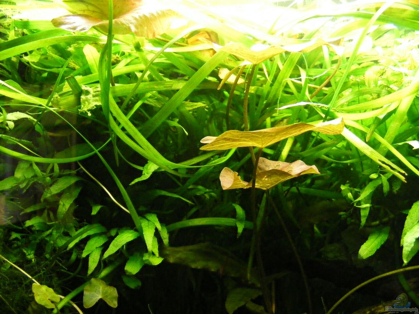 Hintergrund: 4 x Vallisneria spiralis "Tiger" 1 x Nymphaea lotus var. ´"Red" Mitte: 2 x Cryptocoryne wendtii 2 x Microsorum pteropus "Narrow" (auf Rebenholz befestigt) Vordergrund: 1 Portion Taxiphyllum barbieri 2 x Marsilea hirsuta Bei diesen Angaben handelt es sich um die Anzahl der Pflanzen, wie ich sie beim Einrichten verwendet habe. Natürlich haben sie sich mittlerweile stark vermehrt, so dass ich keine Angaben über die aktuelle [...]