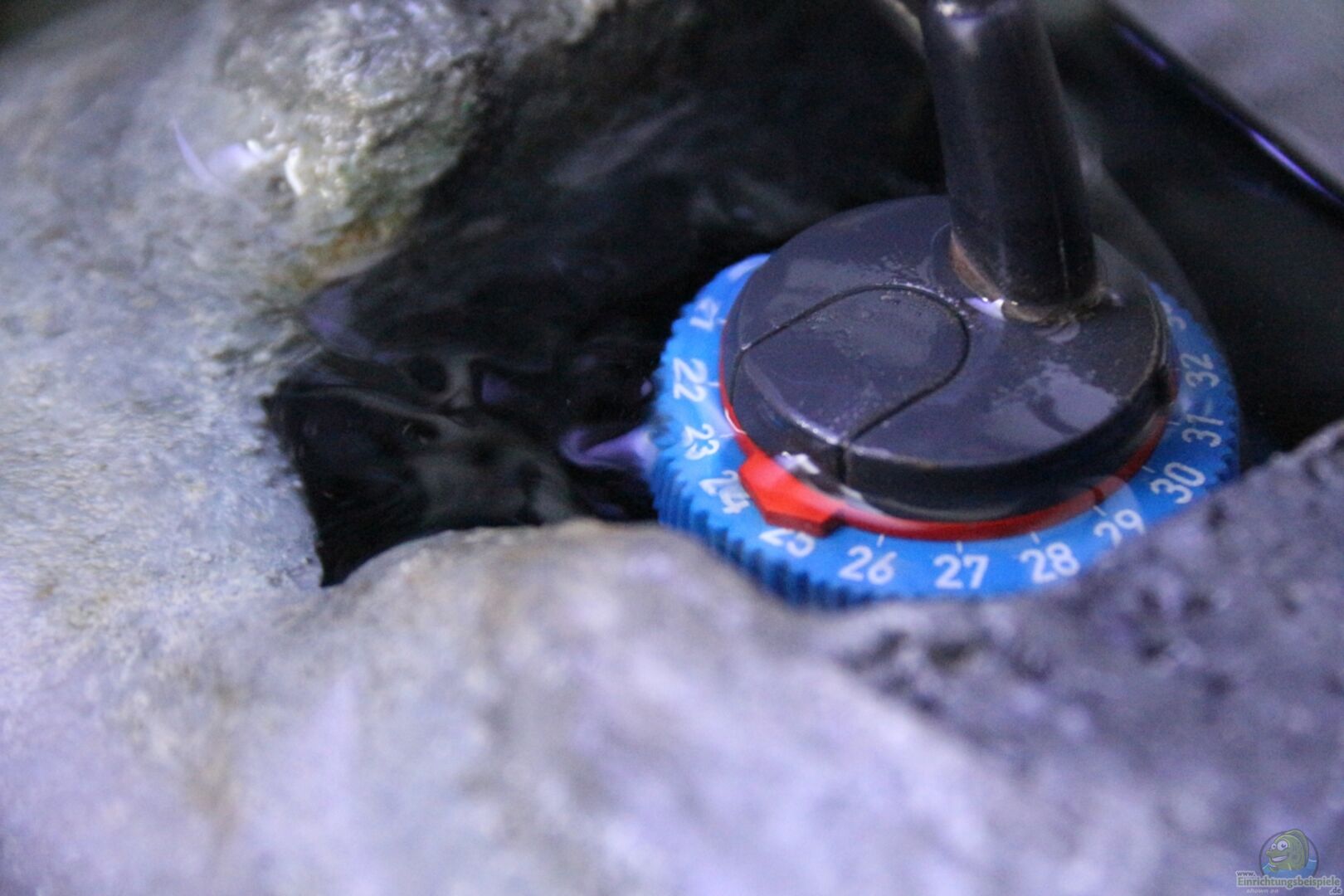 Heizstab Jäger für Becken bis 1000l. Der Heizstab wird per Zeituhr betrieben. Laufzeit 8:00 -20:00 Uhr geplant, habe den Heizstab jedoch noch nicht im Betrieb da die Temperatur relativ konstant 25-27° beträgt. Werde die Heizung wohl erst im Winter benötigen. Diffusor Eheim an einem der zwei Filterzuläufe gesteckt. Hoffe das hält, sonst ist Kleben angesagt. Im Unterschrank Steckdosenleisten mit Zeitschaltuhren für die elektrischen Geräte. Habe mir einen Reinigungshandschuh, [...]