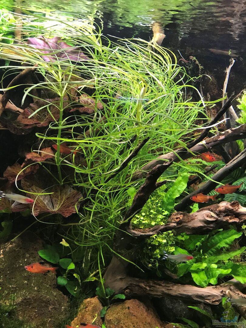 Ich habe die Pflanzen aus meinem "alten" Aquarium komplett übernommen und noch ein bi??chen ergänzt: -verschiedene Cryptocorynen hier ein kleiner Tipp: Wenn die Cryptos im Vordergrund zu gro?? und mächtig werden, einfach radikal abschneiden. Nach einiger Zeit treiben die Cryptos wieder neue kleine Blätter. Das sieht besonders schön aus wenn man mehrere gro??e Cryptos hintereinander stehen hat und die vordersten runtergeschnitten werden.....das gibt dann mächtig Tiefe im Becken. -Riccia [...]