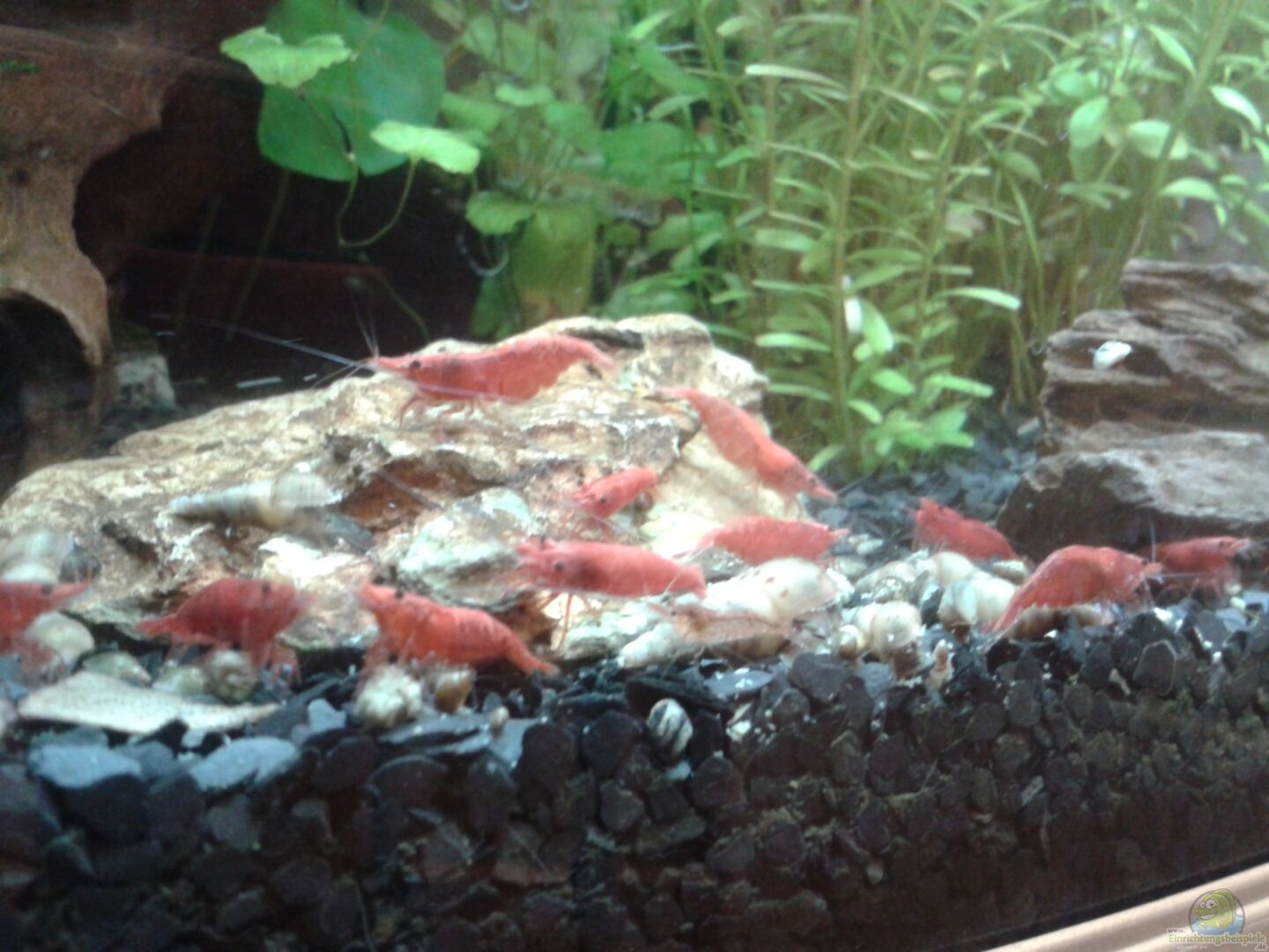 ca. 13 Neocaridina davidii "red fire" 5 Boraras maculatus 8 Boraras brigittae Turmdeckelschnecken (dazu gesetzt) Blasenschnecken (mit den Pflanzen eingeschleppt)